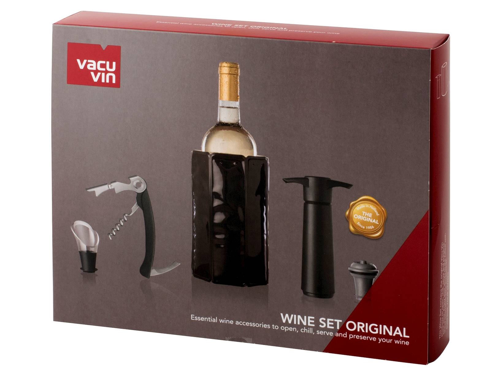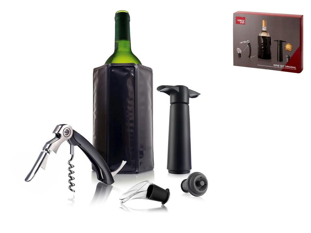 Questo elegante set per il vino da 5 pezzi è progettato per gli intenditori che apprezzano la qualità e la funzionalità. Il set include un cavatappi a due tempi, perfetto per rimuovere i tappi con facilità, e un raffreddatore attivo che mantiene il vino alla temperatura ideale. Completano il set un versatore per garantire un servizio senza gocce, una pompa per vuoto per preservare la freschezza del vino e un tappo ermetico. LINEA VACUVIN,SCONTO15,vacuvin