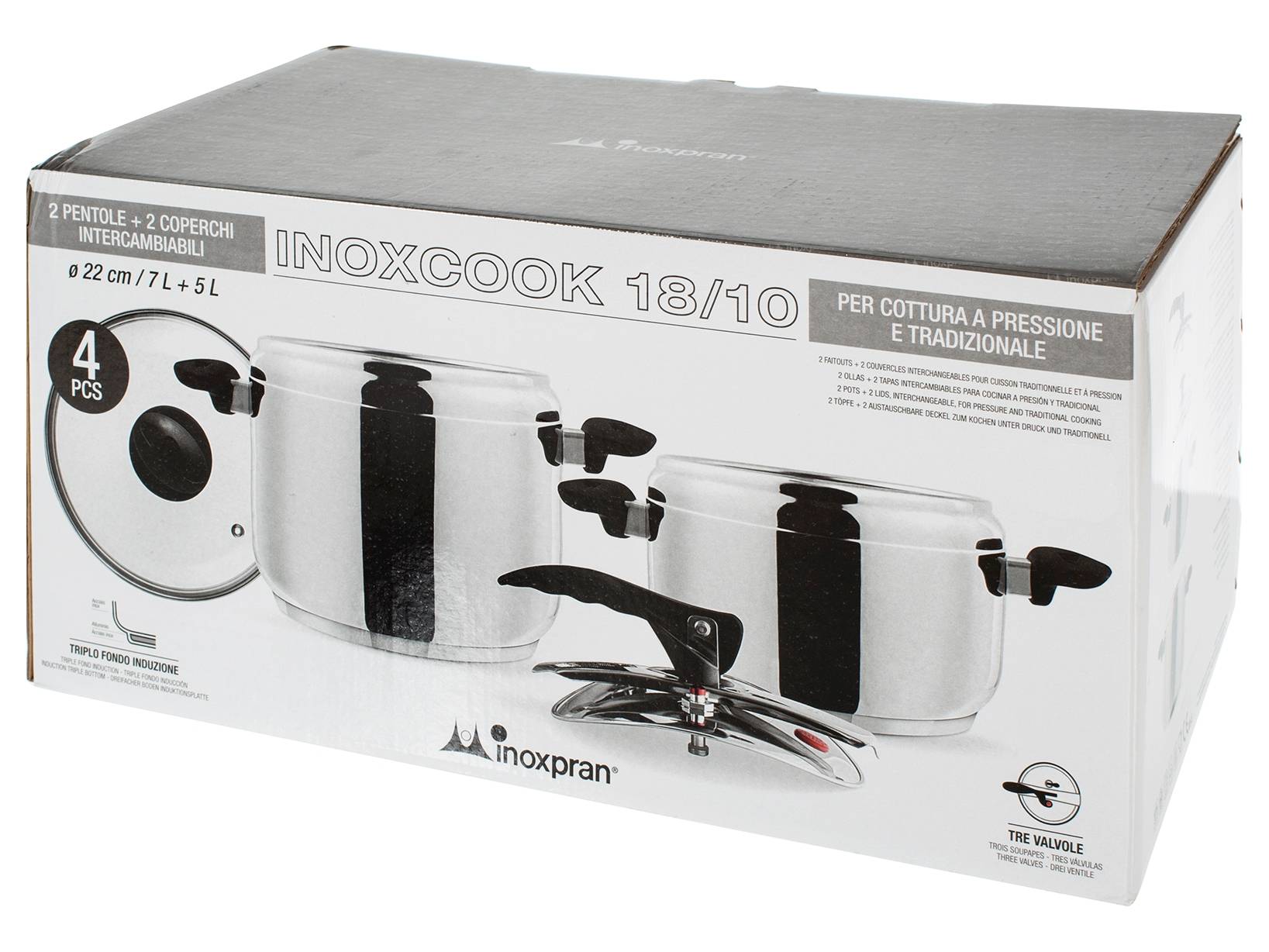 INOXPRAN Set 2 Pentole A Pressione Inoxcook In Acciaio Inox Lt 5 E Lt 7
