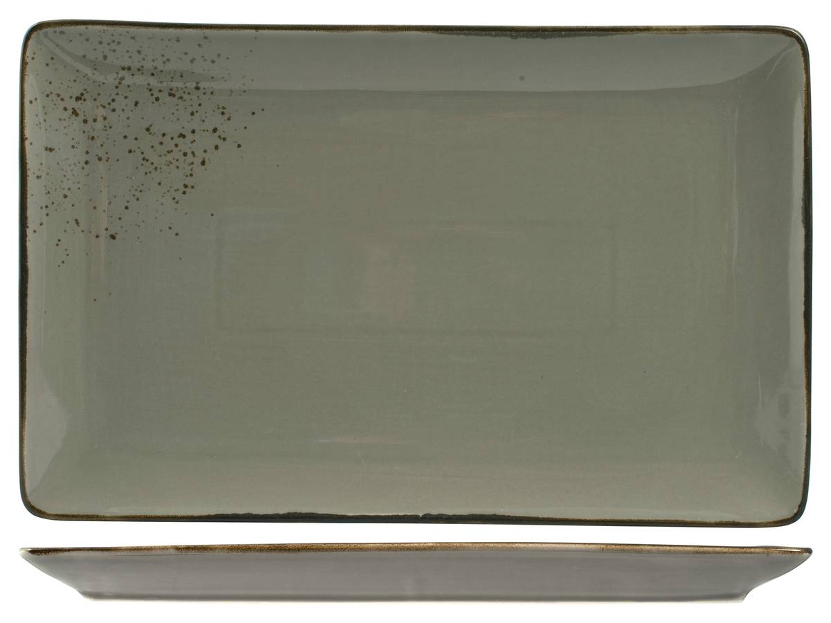 H&H Set 6 Piatti Rettangolari Stoneware Reactive Grigio Cm38