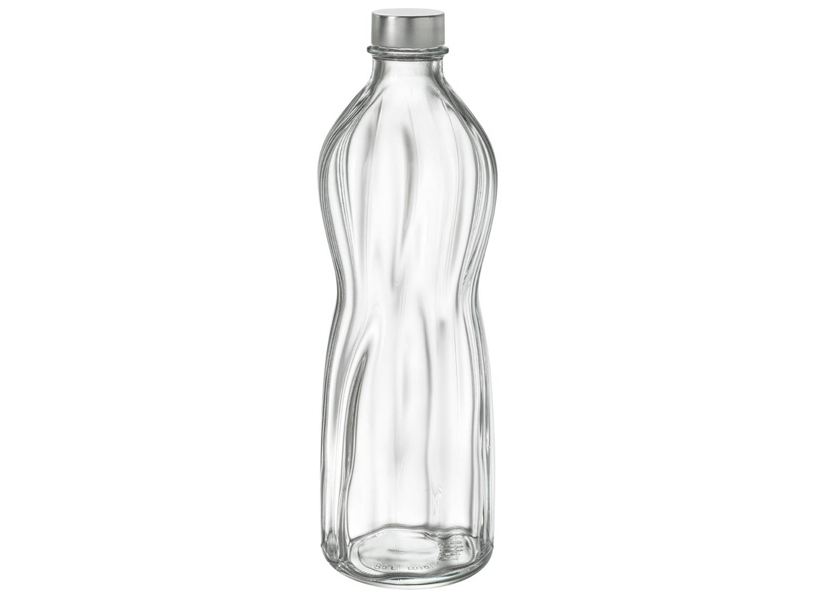 Bottiglia con tappo a vite in vetro trasparente, dalle linee sinuose, ideale per acqua e altre bevande. Capacità di 1 litro. LINEA AQUA,LAVASTOVIGLIE,Bormioli Rocco