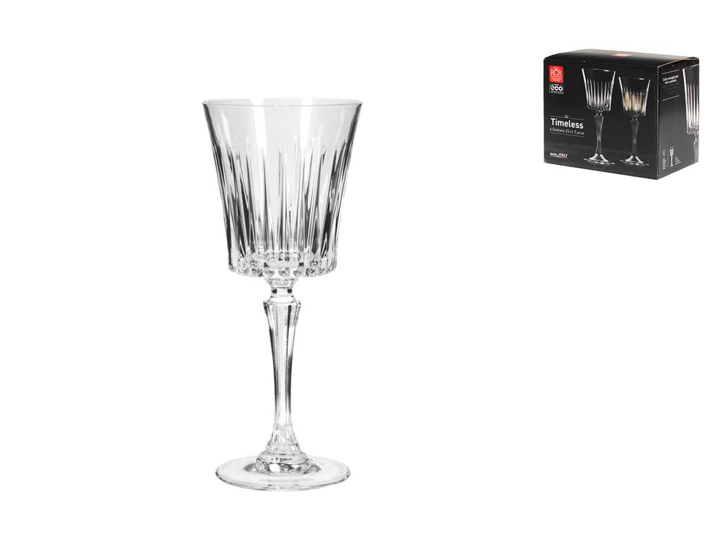 Set di 6 calici da vino della linea Timeless in vetro sonoro, capacità cl 23. Made in Italy. Eleganza apprezzata in ambienti raffinati e sul set di film di successo. LAVASTOVIGLIE,SCONTO15
