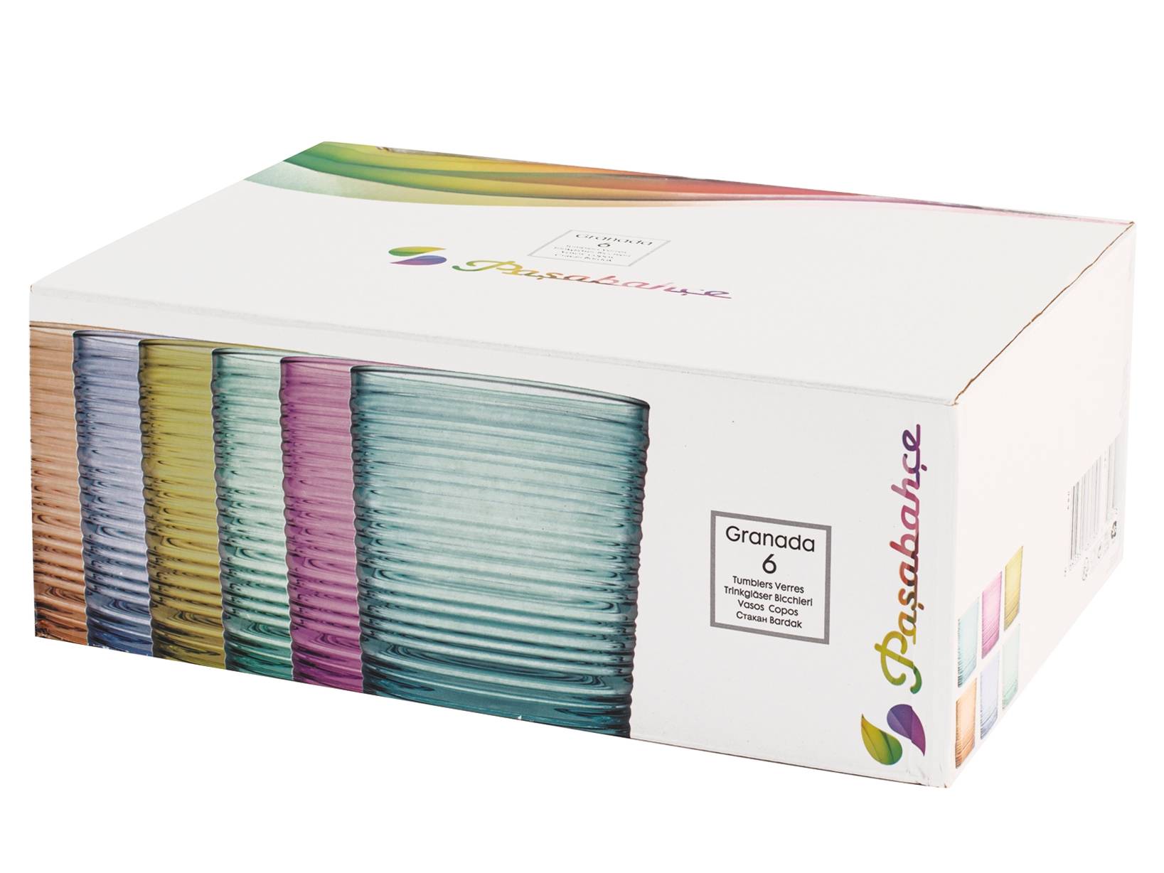 Set di 6 bicchieri Granada in vetro con colori soft, capacità 41 cl. Perfetti per una presentazione elegante e sofisticata, questi bicchieri con colori tenui sono ideali per ogni occasione. Pasabahce