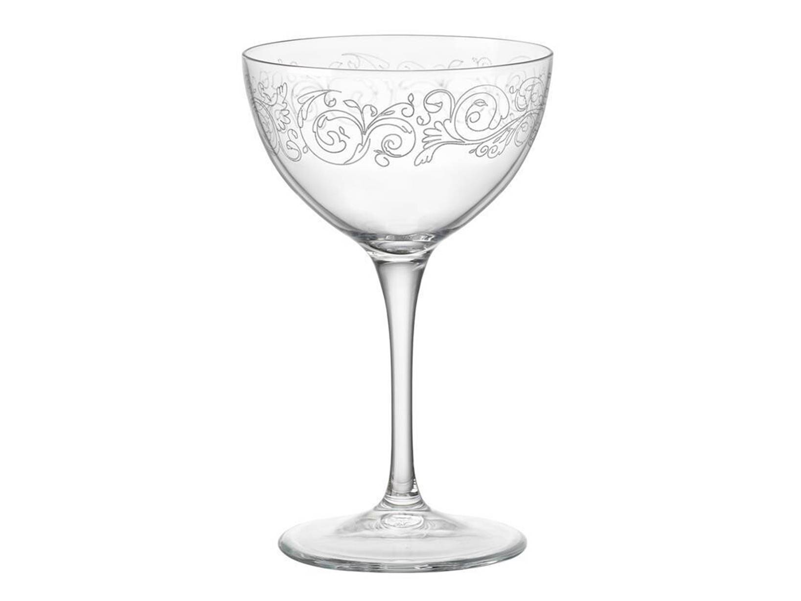 Set di 6 calici Liberty Martini in vetro trasparente decorato, con capacità di 23,5 cl, ideali per Martini e cocktail classici. LINEA LIBERTY VTR,SCONTO20,Bormioli Rocco