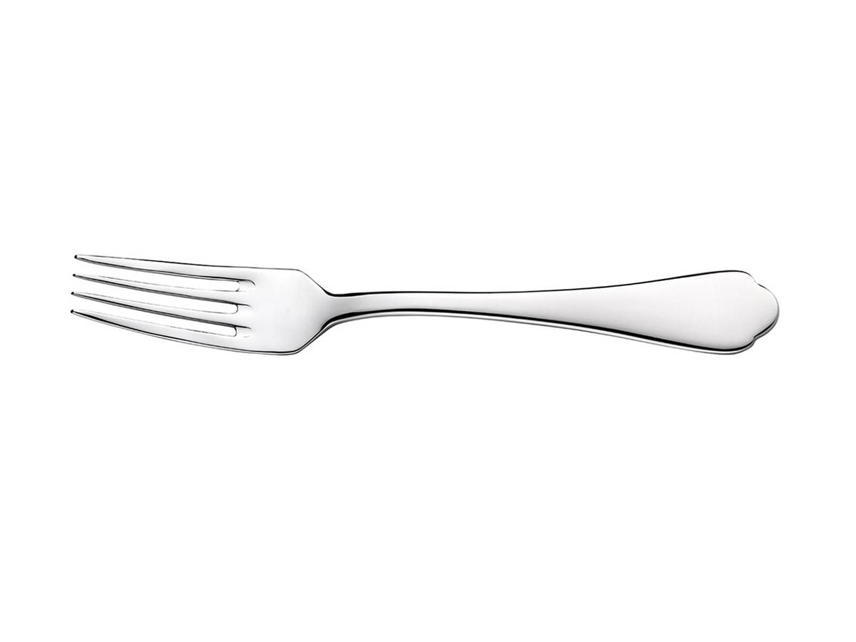 Set di 12 forchette da frutta Rialto in acciaio inox, eleganti e senza decori.