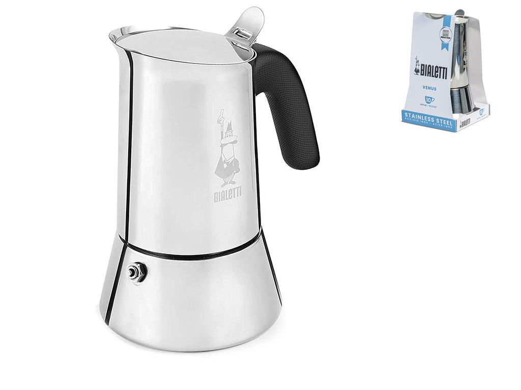 Caffettieria da 10 tazze venus in acciaio inox. Dimensioni: cm 15x23hx12. Design slanciato ed elegante che si combina ai materiali di qualità, per un risultato professionale comodamente a casa. È dotata di manico anti scottatura per una presa facile e sicura e le dimensioni consento di preparare 10 caffè, risparmiando così tempo durante i tuoi momenti in compagnia. Studiata anche per essere adatta al piano cottura ad induzione. Preferibile il lavaggio a mano solamente con acqua. Preparare il caffè sarà un momento speciale grazie alla tua caffettiera. Bialetti