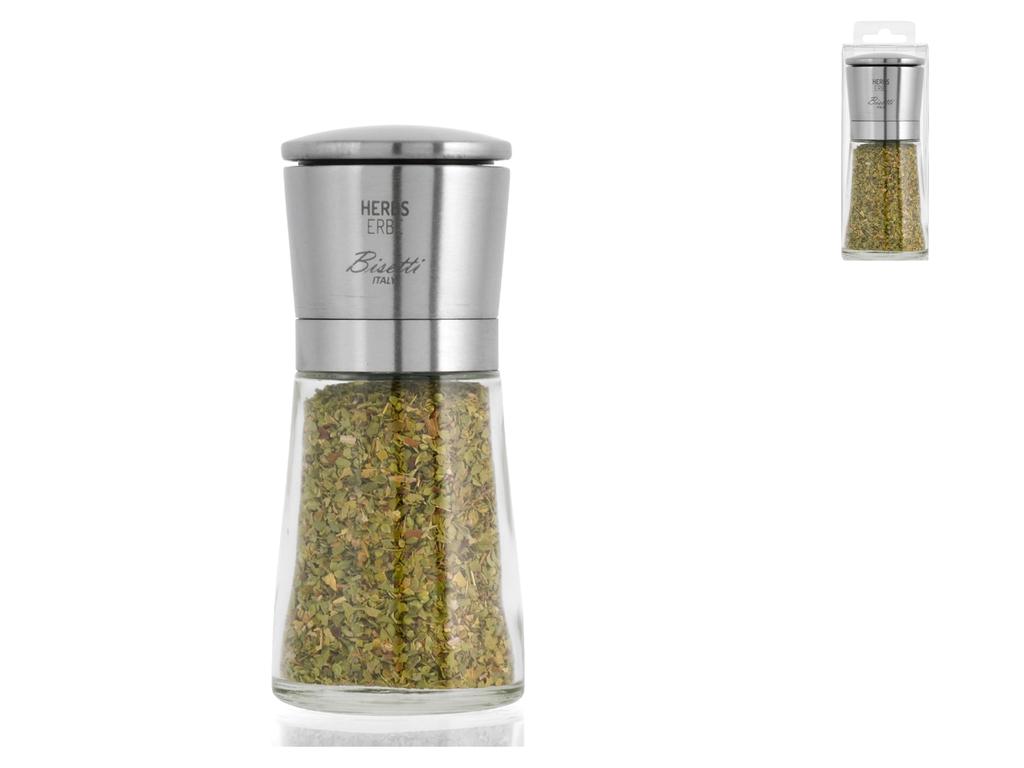 Macinaerbe le macine in vetro con meccanismo e tappo in acciaio inox cm 6,5x14,5 Made in Italy.