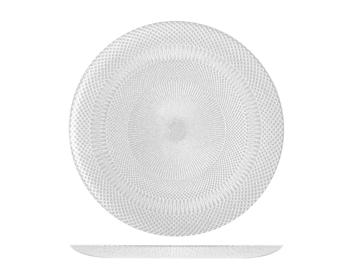H&H Set 6 Piatti Piani Glam In Vetro Bianco Cm 28,5