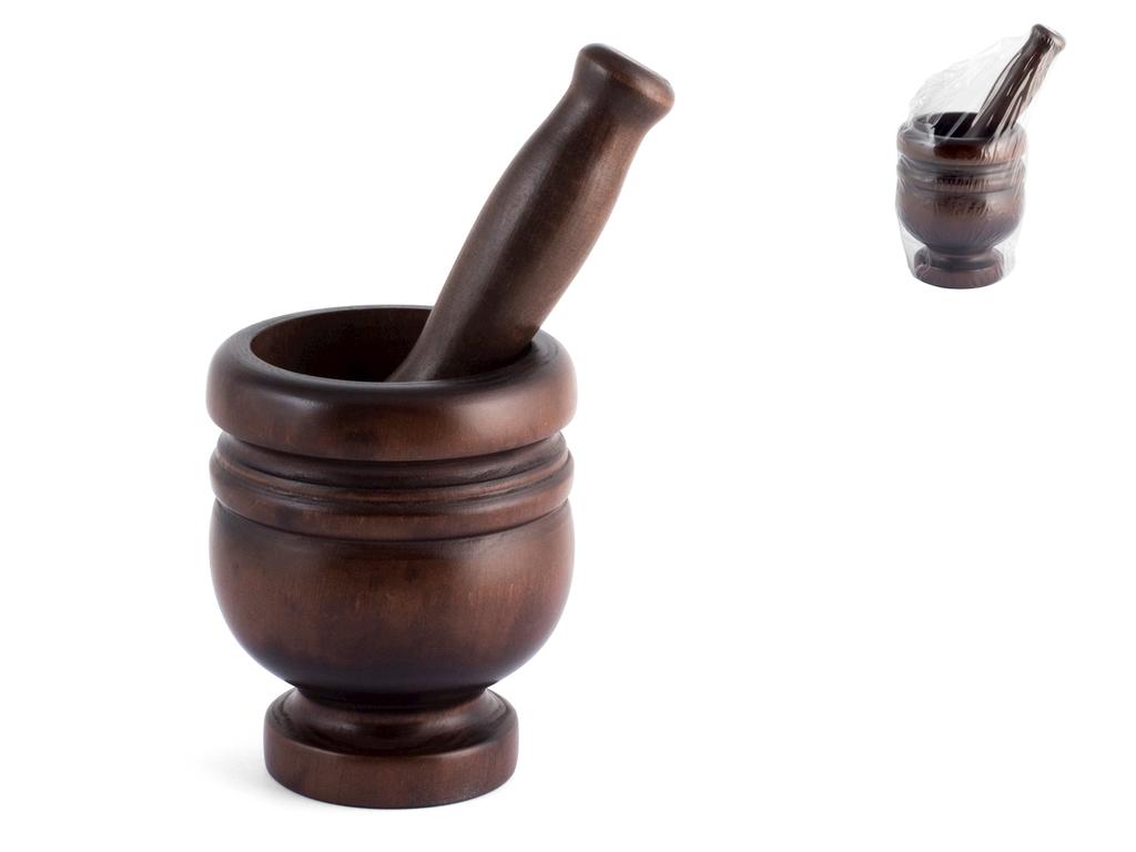 Mortaio Con Pestello In Legno Scuro Cm 10X20H