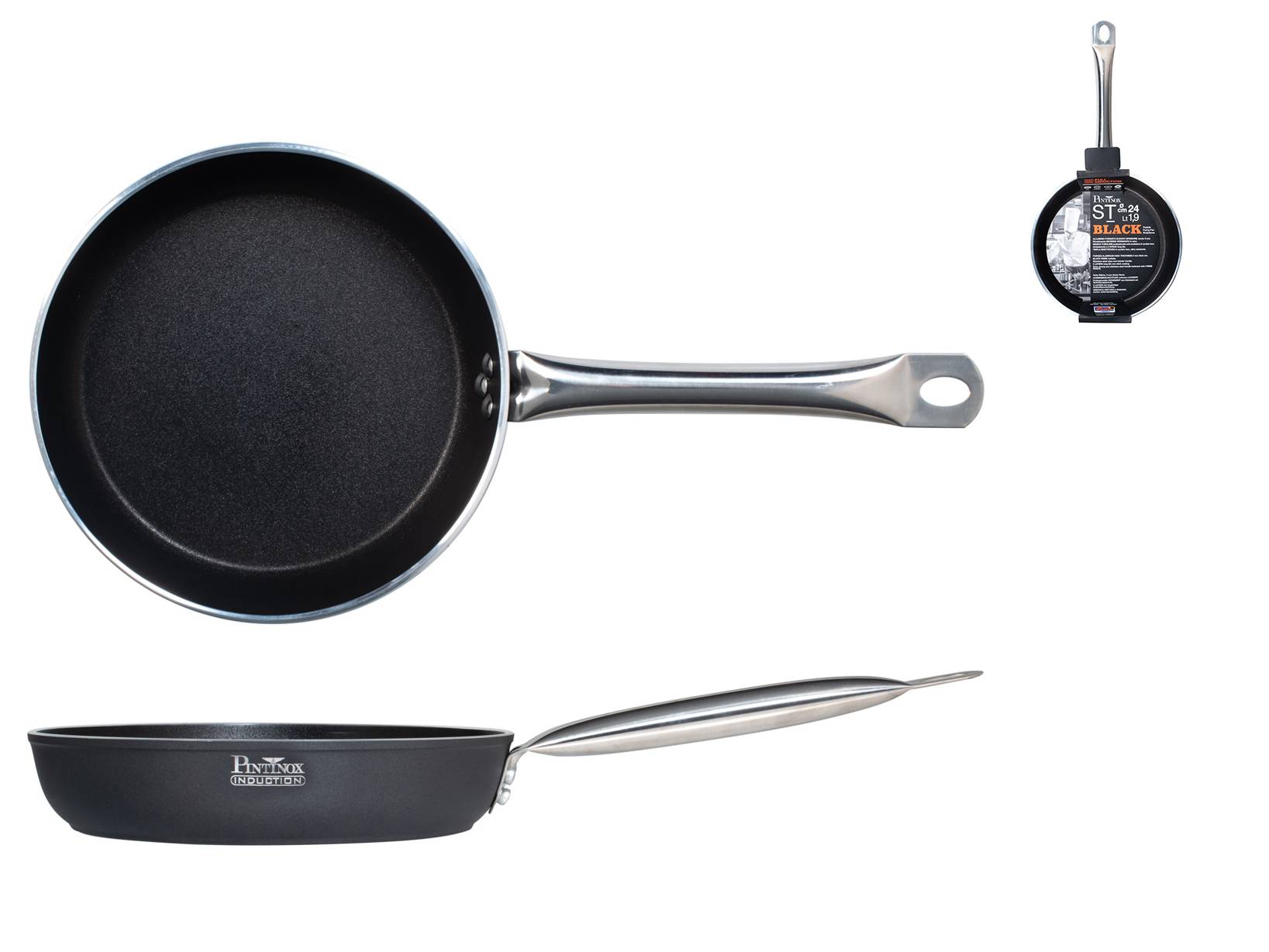 Padella st black in alluminio con rivestimento antiaderente a 3 strati cm 24. Manico tubolare anti scottatura in acciaio inox. Colore nero. LINEA ST BLACK,SCONTO20
