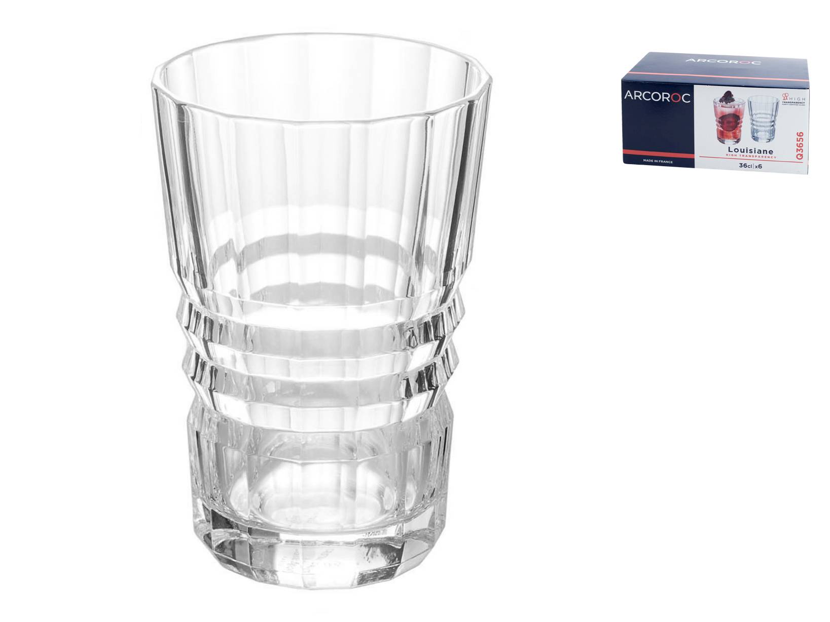 Il set di 6 bicchieri ARC Louisiane è realizzato in vetro resistente con una capacità di 36 cl. Il loro design classico e le linee eleganti li rendono ideali per qualsiasi occasione, aggiungendo un tocco di raffinatezza alla tua tavola. Perfetti per servire bevande fredde, questi bicchieri combinano estetica e funzionalità, adattandosi sia a contesti quotidiani che a occasioni speciali. LINEA LOUISIANE