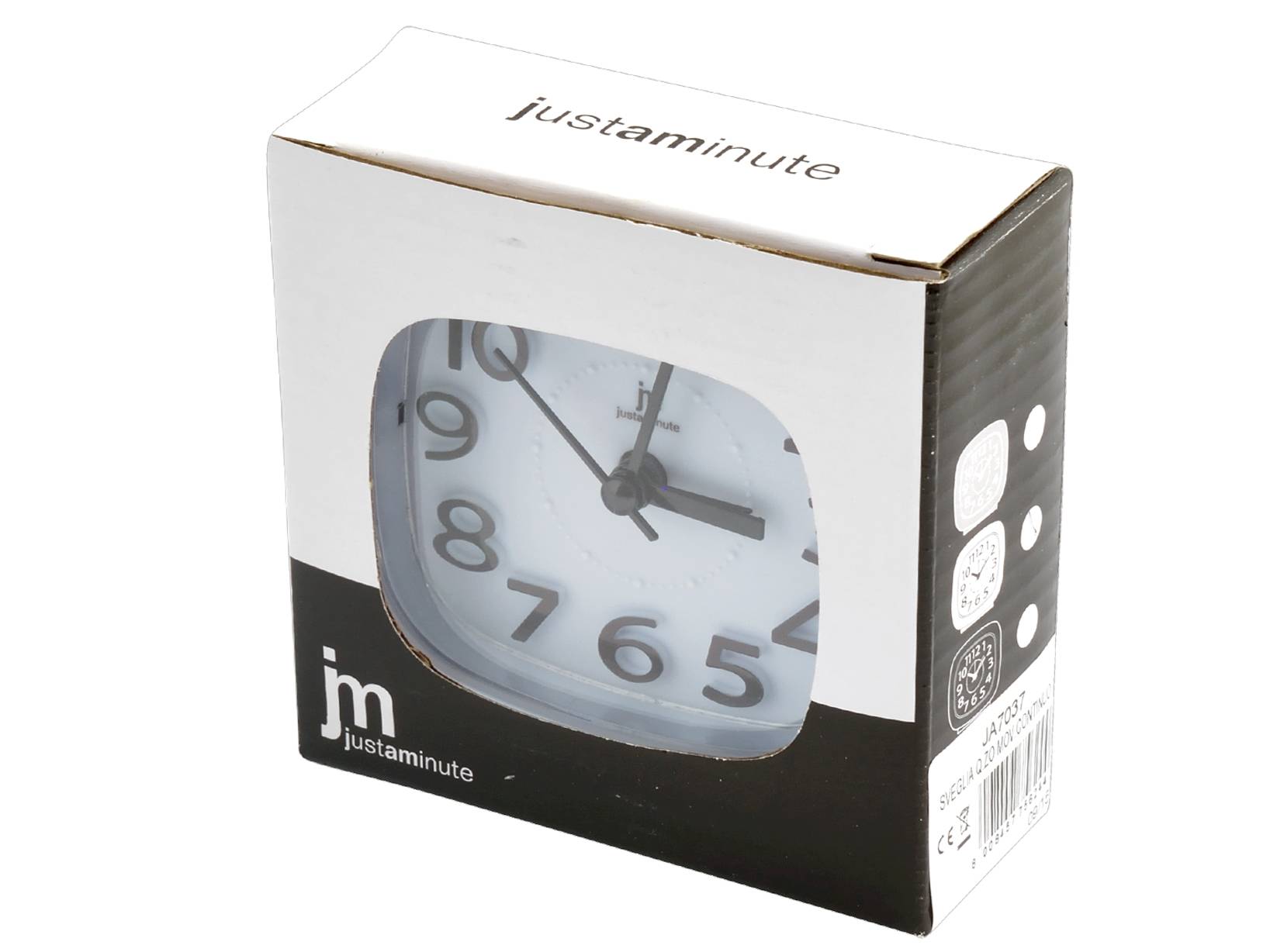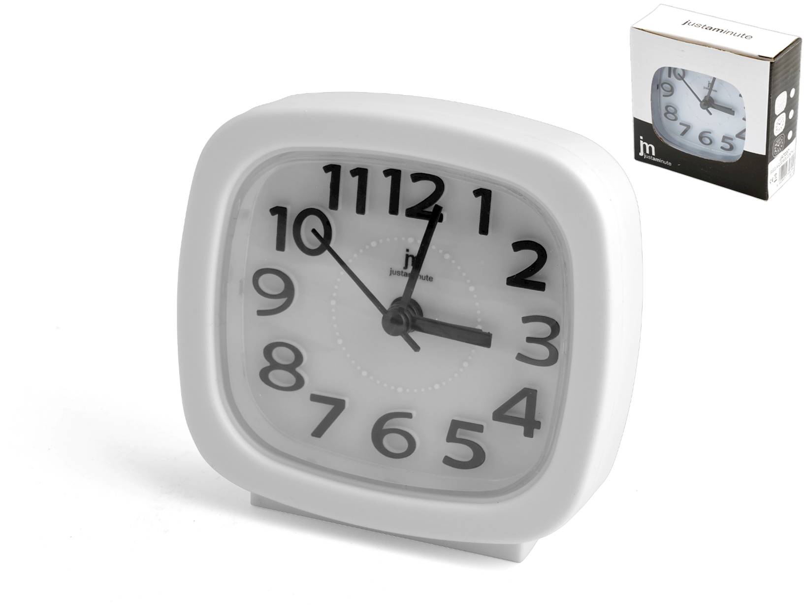 Sveglia al quarzo bianca con movimento continuo. Pratica e versatile, dotata di allarme per non perdere mai un appuntamento. Adatta a qualsiasi decorazione d'interni. LINEA JUST A MINUTE