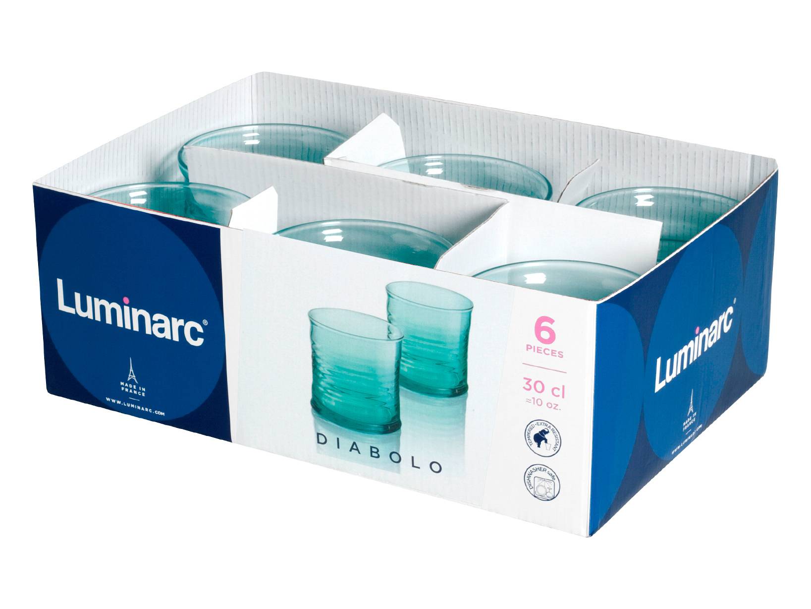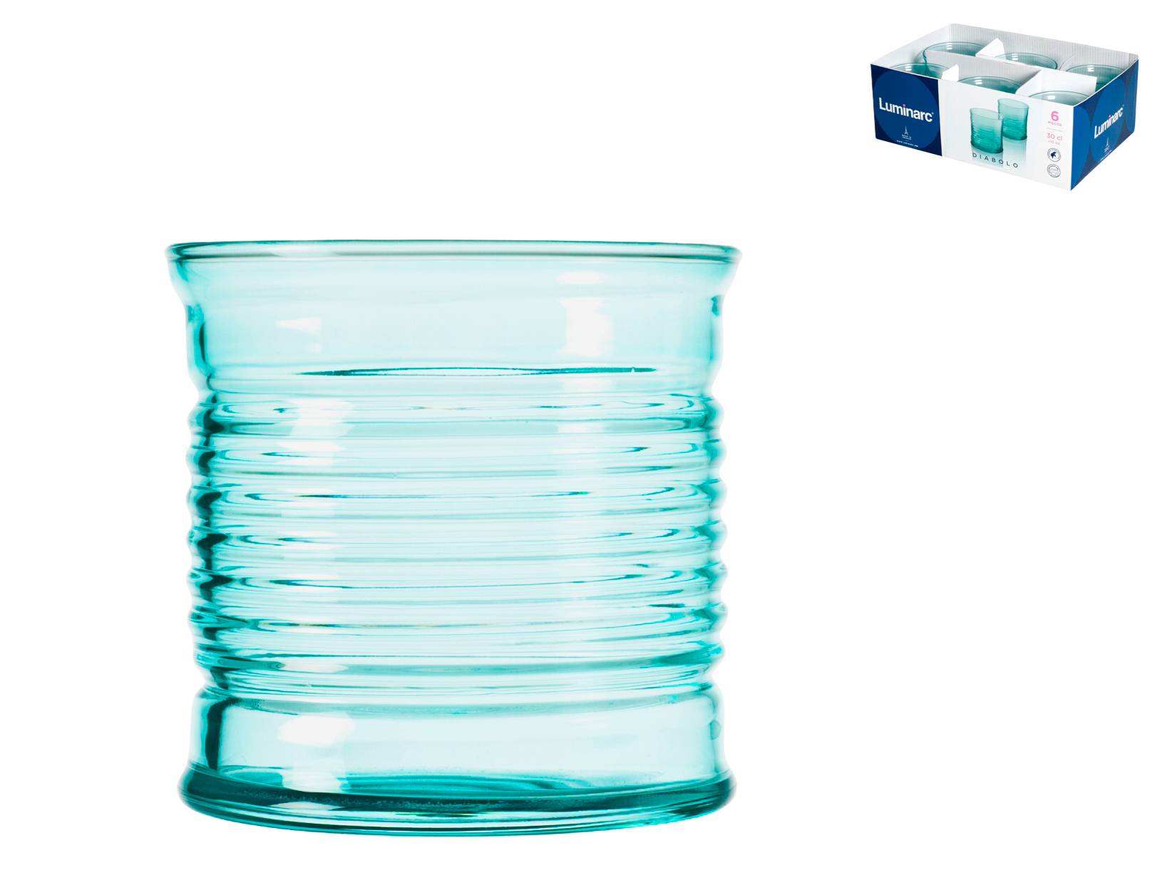 ARC Set 6 Bicchieri Diabolo In Vetro Verde Acqua Cl 30