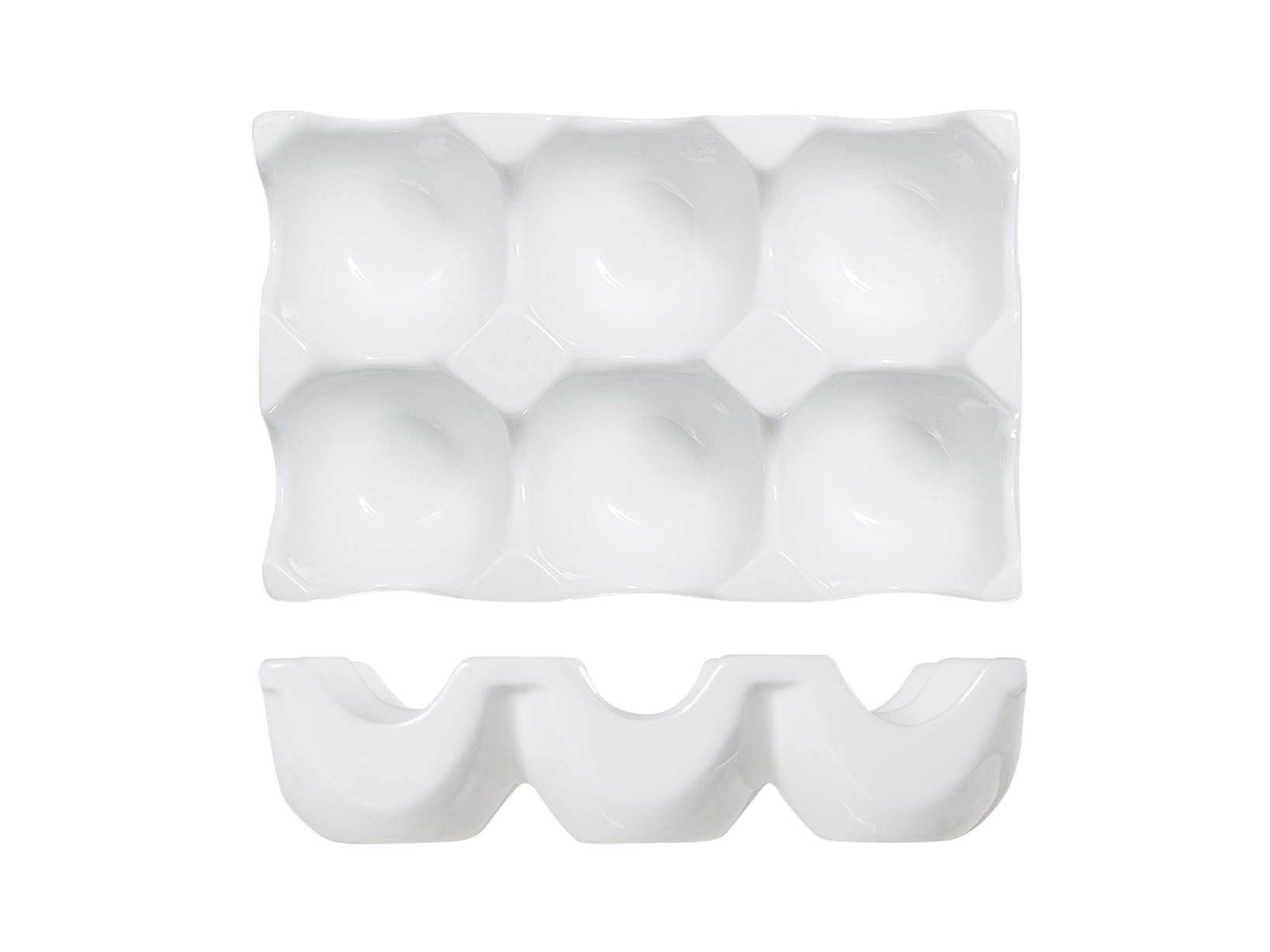 Porta uova rettangolare in porcellana bianca con 6 posti, dimensioni 14x9 cm. Questo elegante porta uova è progettato per tenere in ordine gli uova in modo raffinato durante la colazione o i pasti. LINEA PORCELLANA BIANCA,H&H,heh