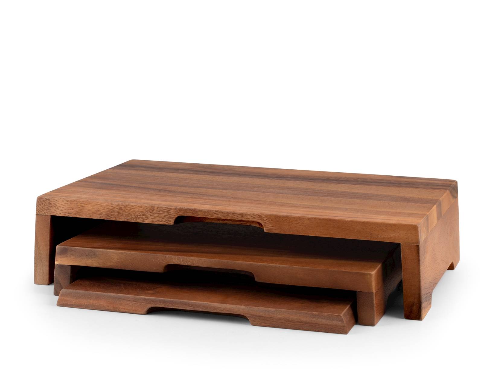 Confezione di 3 alzate in legno di acacia: 1 di 30x25 cm, 1 di 31x25 cm, e 1 di 37x25 cm. Ideale per presentare dolci e antipasti. LINEA ACACIA NEW COLLECT.,SCONTO20,H&H,heh