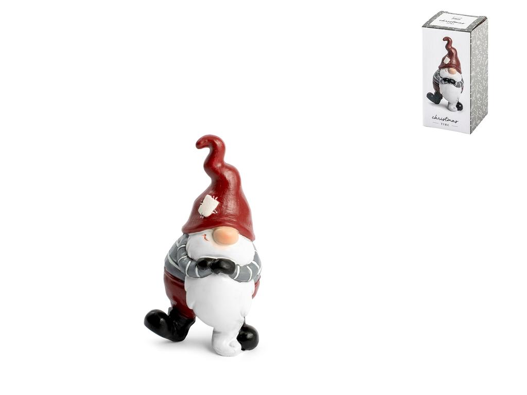 H&H Gnomo In Poliresina Colore Grigio A Righe Con Cappello Rosso