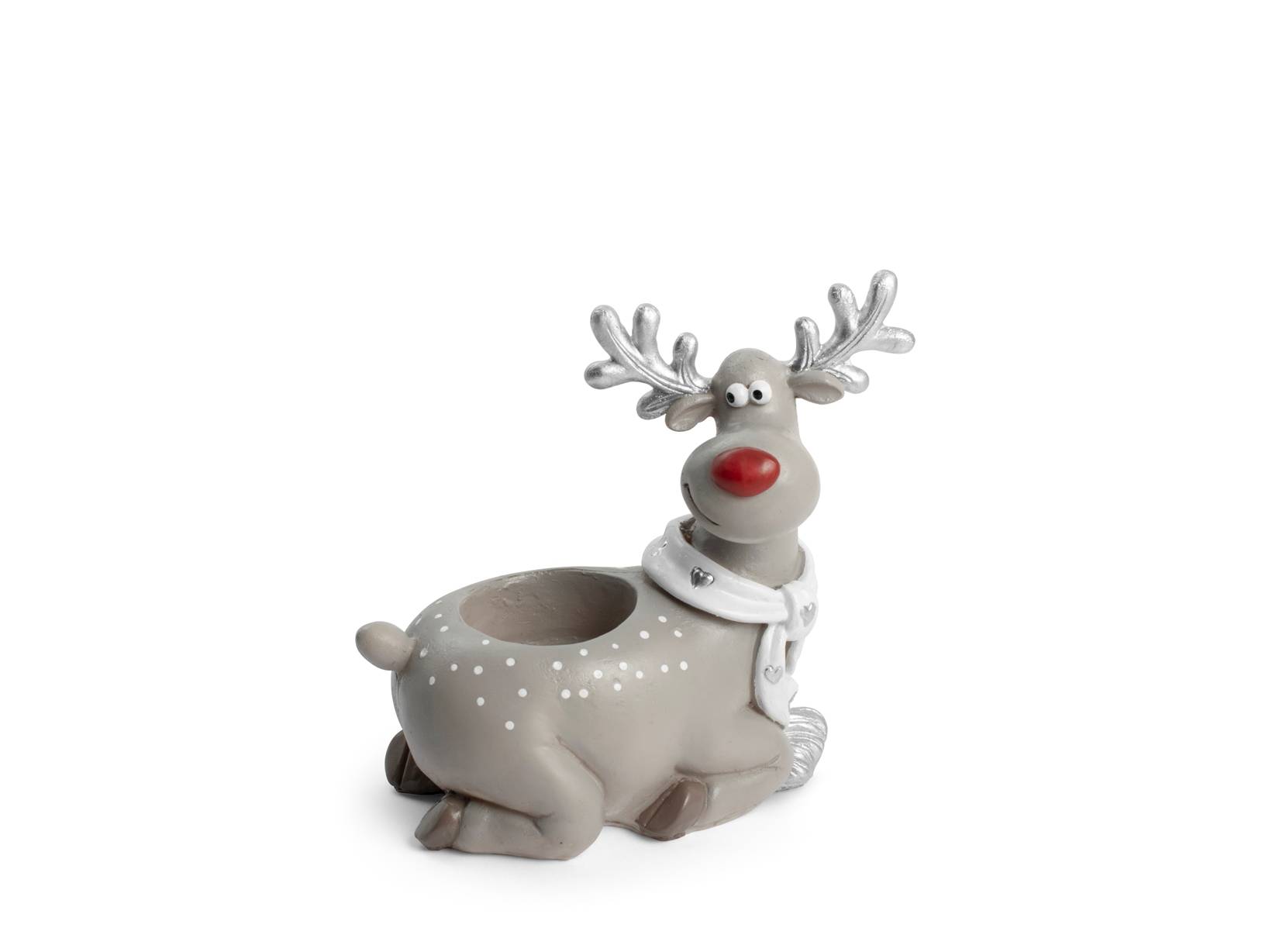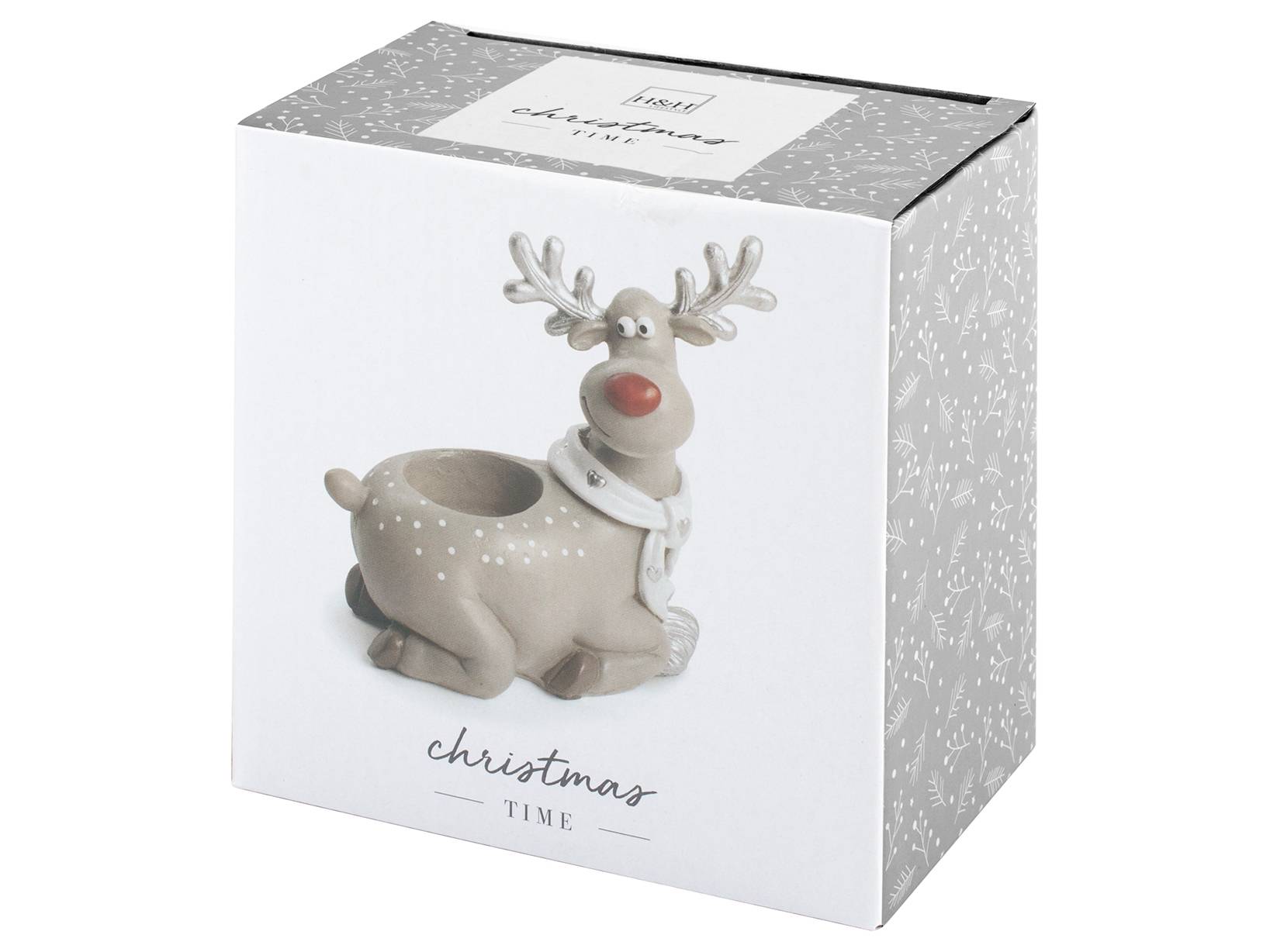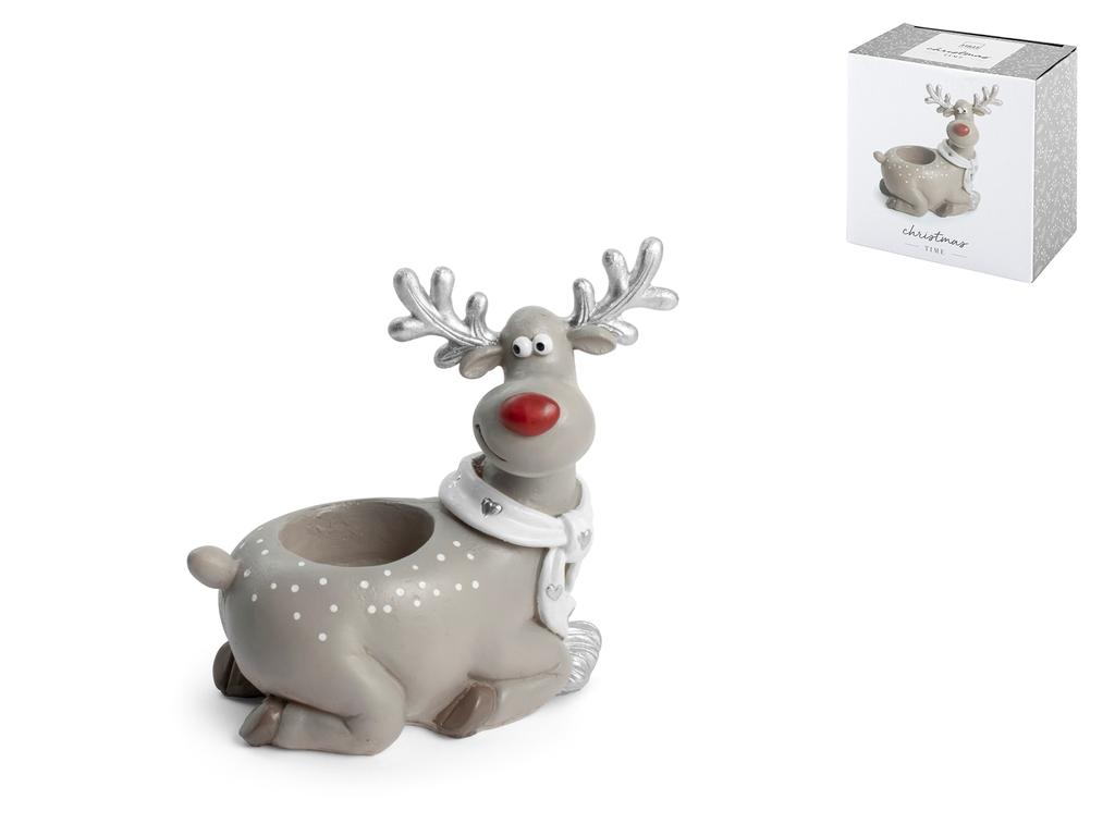 H&H Renna Porta Tealight In Poliresina Colore Grigio Cm13