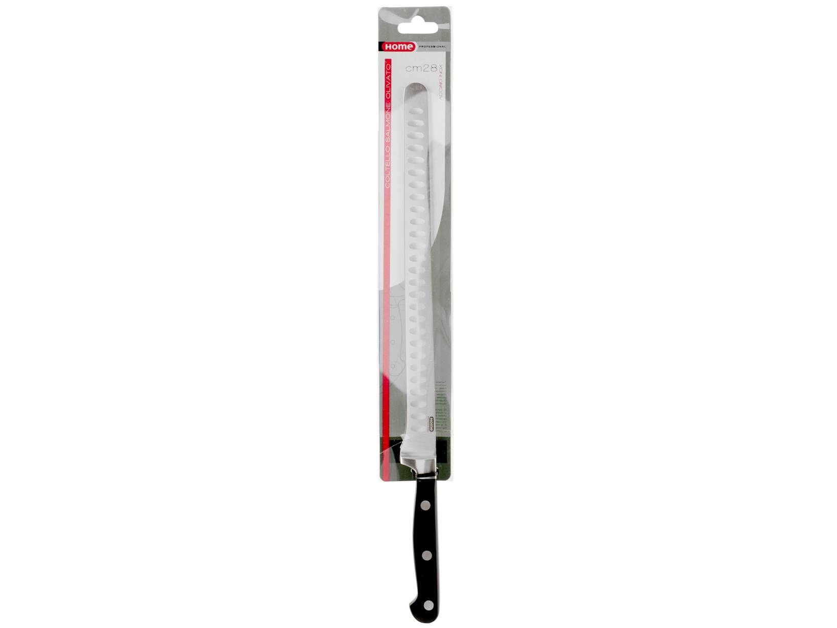 Il coltello per salmone H&H Professional da 28 cm con lama olivata è perfetto per affettare pesce crudo con precisione millimetrica. La lama olivata riduce l'attrito, permettendo di ottenere fette sottili e uniformi senza che il pesce si attacchi alla lama. LINEA BLACK&STEEL,H&H,heh