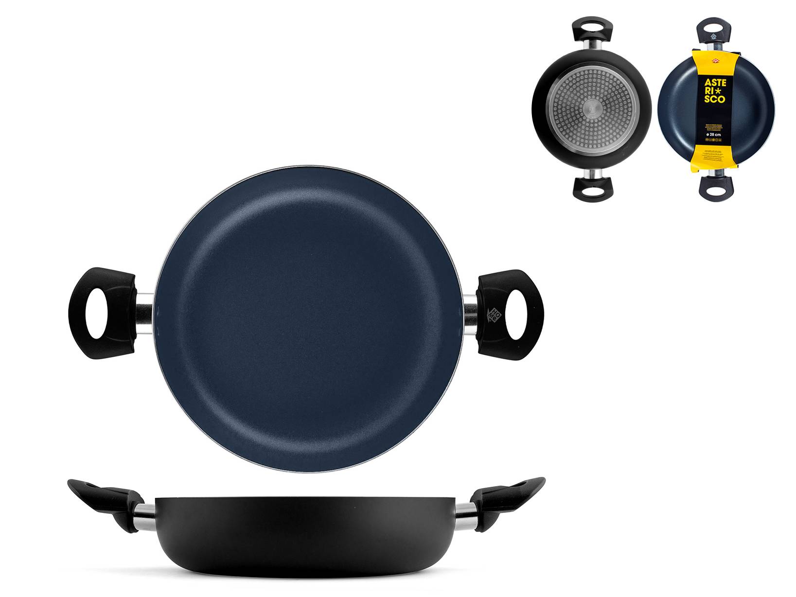 Tegame asterisco in alluminio con rivestimento antiaderente, diametro 28 cm e 2 manici. Realizzato in alluminio, il fondo è adatto a tutti i piani cottura. LINEA ASTERISCO,SCONTO15