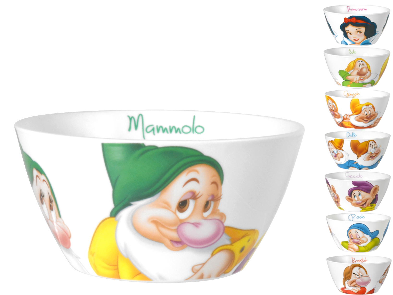 Set di 12 ciotole per cereali in porcellana con decori assortiti dei Sette Nani di Disney, capacità 630 cc. Ideali per la colazione, queste ciotole sono perfette per chi vuole iniziare la giornata con un tocco di magia Disney. LINEA SETTE NANI,SCONTO25