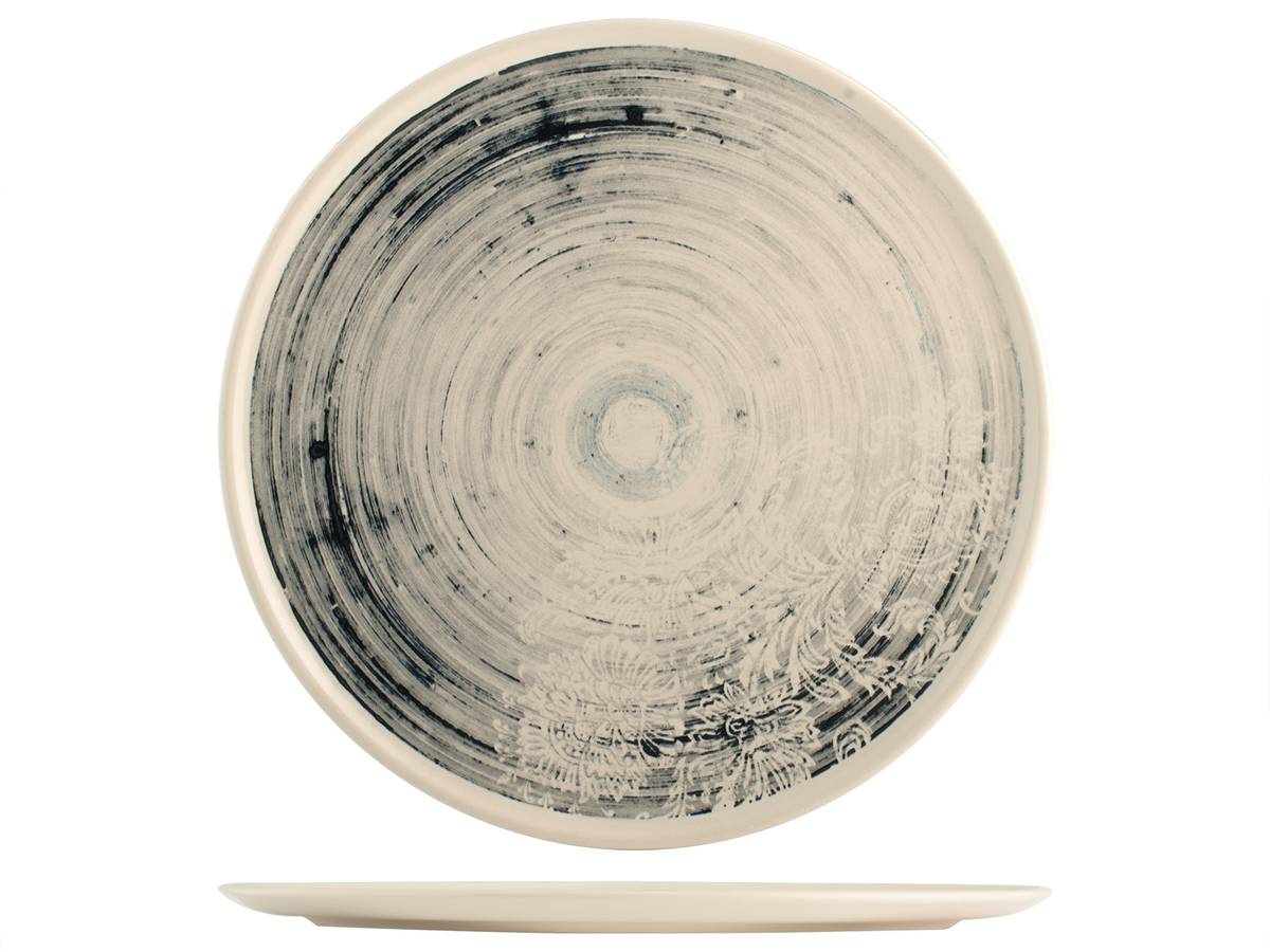 Confezione di 6 piatti tondi da portata/pizza realizzati in stoneware. Il decoro dei piatti è caratterizzato da pennellate concentriche dal tratto imperfetto, alternate da decorazioni floreali che rendono ogni pezzo unico ed originale. Diametro di 32 cm, perfetti come piatti da portata o pizza. H&H,heh,HORECA