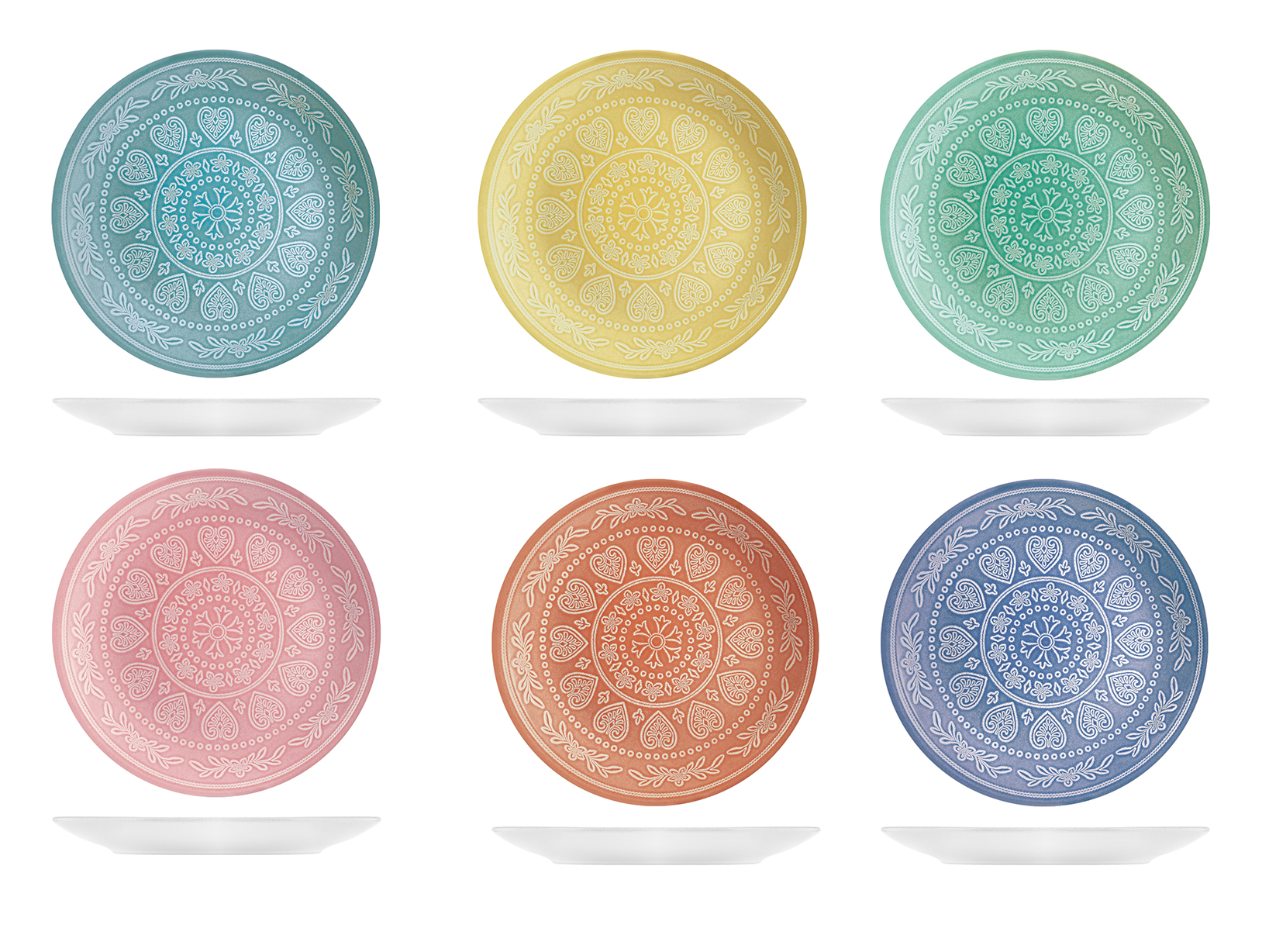 H&H Set 6 Piatti Piani Stoneware Karma Assortiti Cm 27