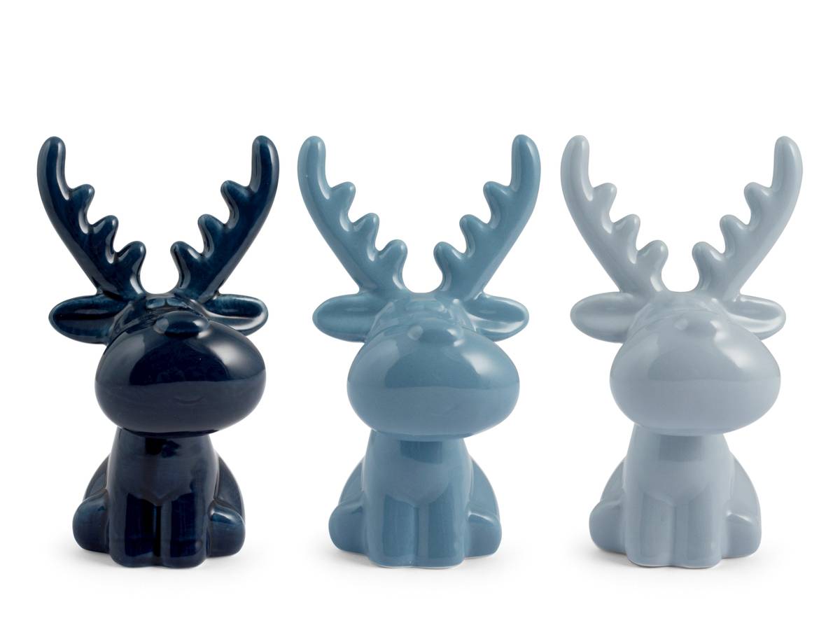 H&H Set 6 Renne Sedute In Stoneware Colore Blu E Azzurro Cm15,5