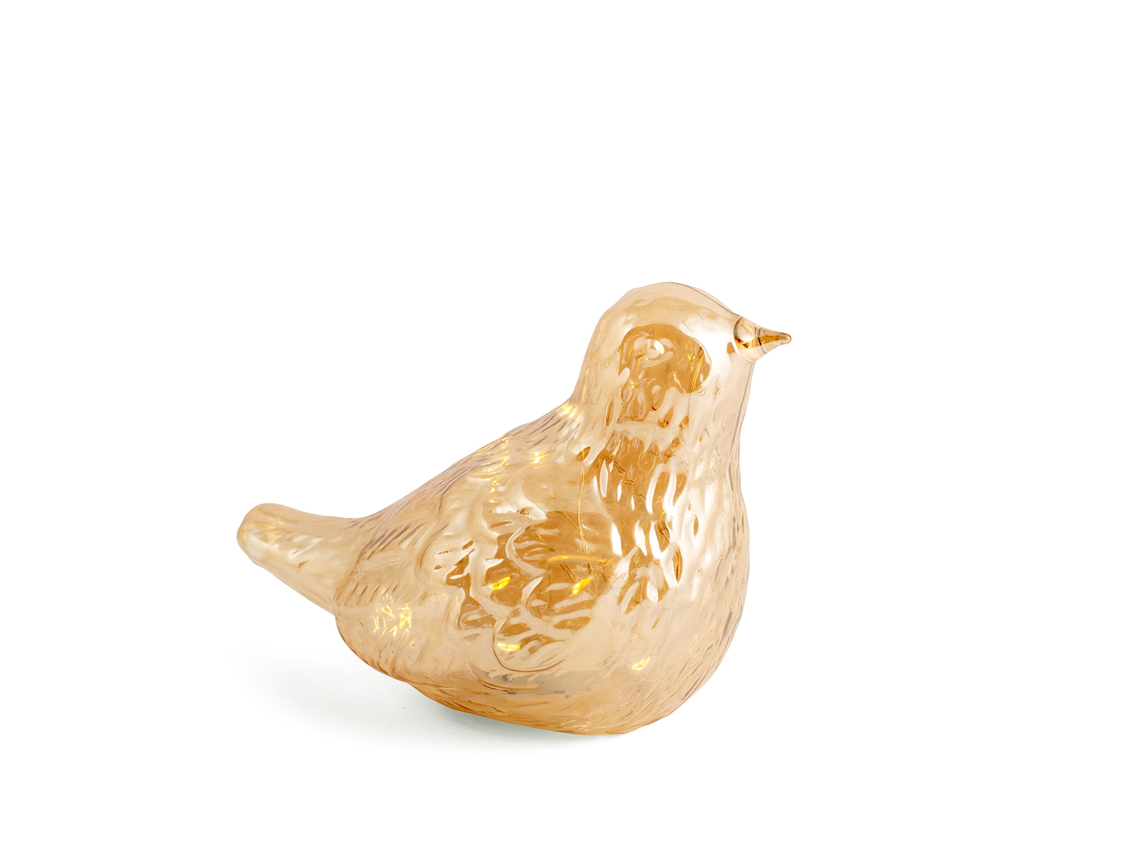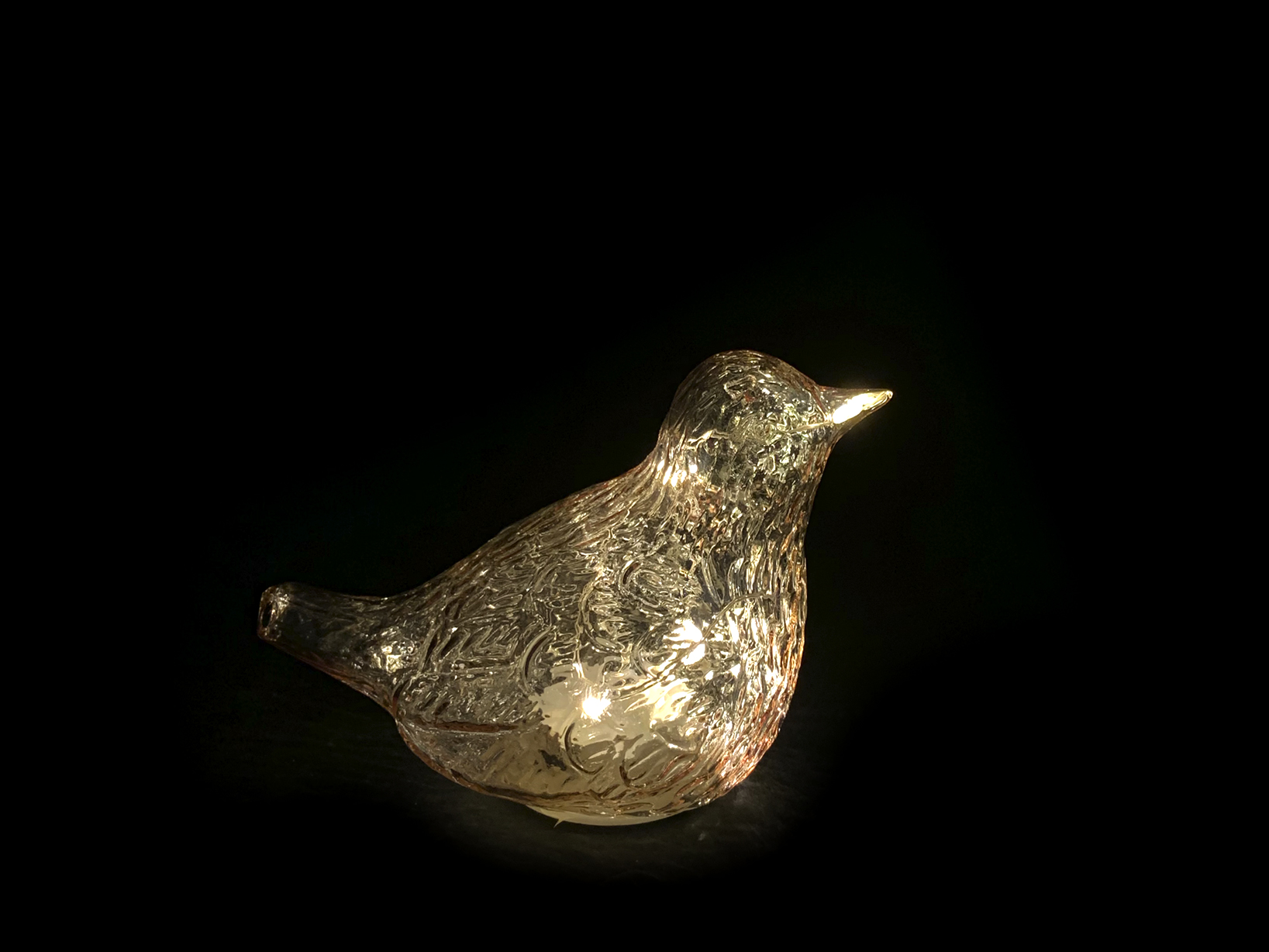 Questo adorabile uccellino in vetro color oro, alto 9 cm, è illuminato da un LED che aggiunge un tocco di magia al tuo decor natalizio. Perfetto per creare un'atmosfera incantevole, ma ricorda che le batterie 2xCR2023 3V non sono incluse. LINEA H&H NATALE,H&H,heh