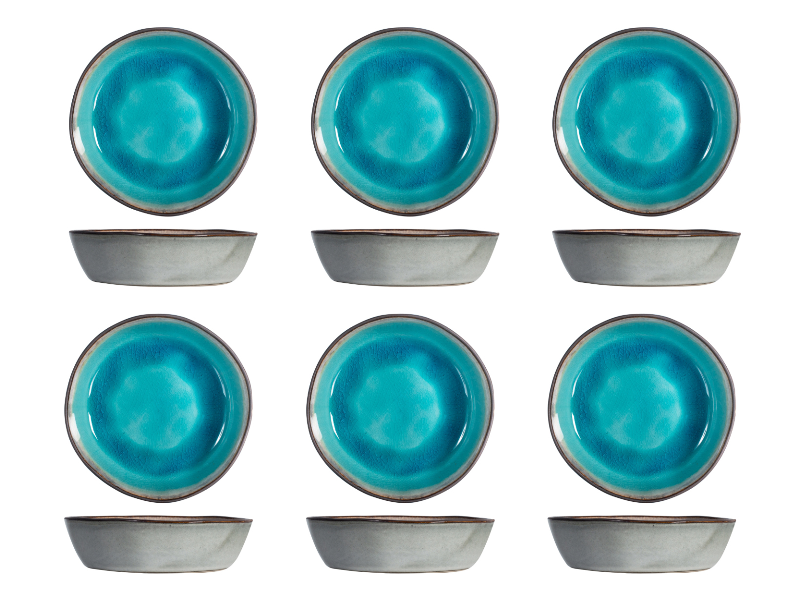 H&H Teide Set 6 Piatti Fondi In Stoneware Azzurro Cm 16