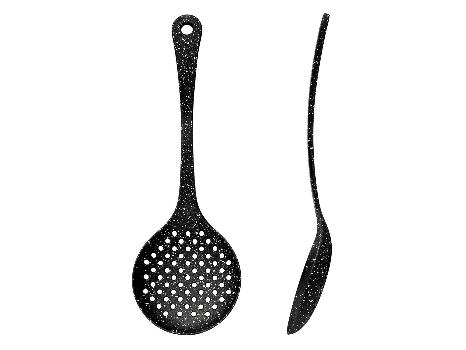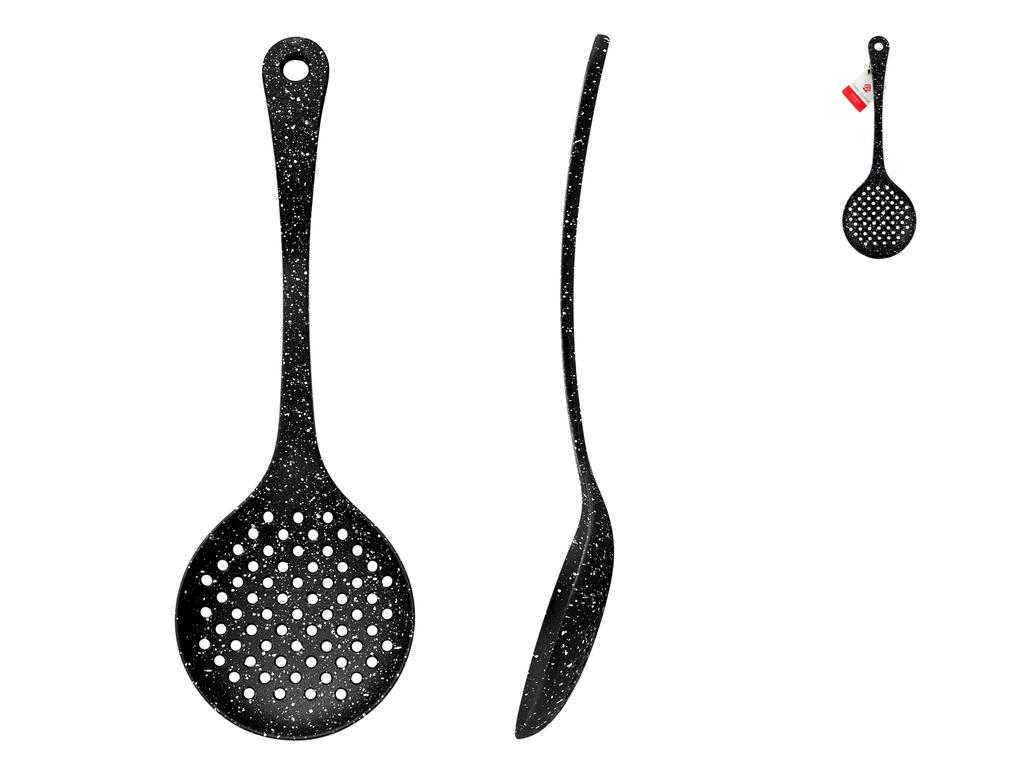 Schiumarola deep universe in nylon colore nero cm11resistente al calore, idoneo al contato con gli alimenti e non graffierà le tue pentole!lavabile in lavastoviglie e resistente fino a 220°c. La linea comprende anche paletta, mestolo e cucchiaione. LINEA DEEP UNIVERSE