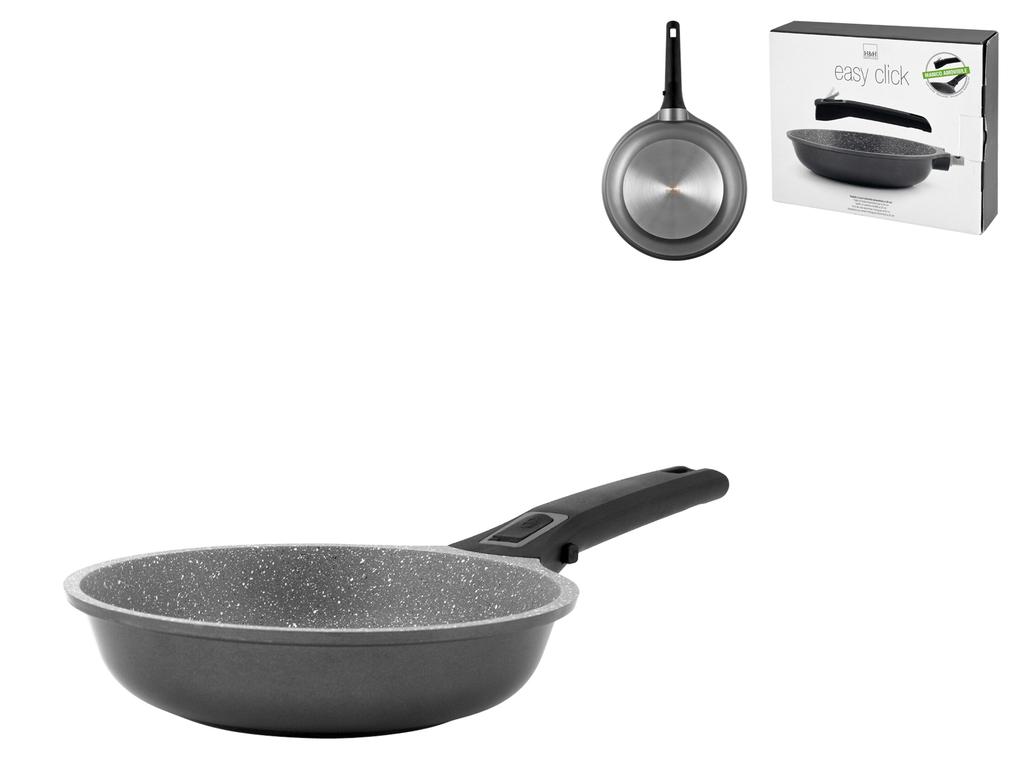 Easy Click perche' e' facile sganciare il manico, occupare meno spazio nei cassettoni della cucina e poter utilizzare la padella, il tegame, il wok, la bistecchiera o la casseruola anche in forno. Amovibile, facile, comodo, easy! in alluminio pressofuso, adatta anche ai piani ad induzione. H&H,heh