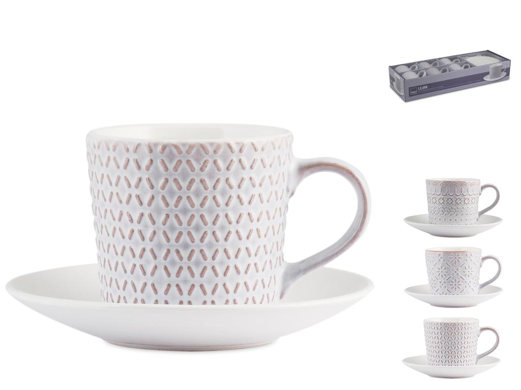 H&H Set 6 Tazze Tè Lilian Stoneware Con Piatto Cc200