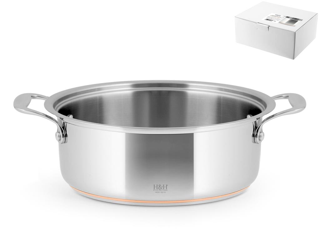 H&H Casseruola Bassa In Acciaio Inox 18/10 E Rame, Ø Cm22