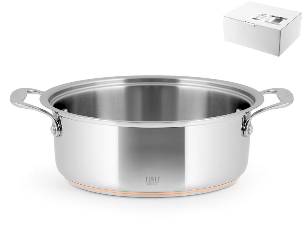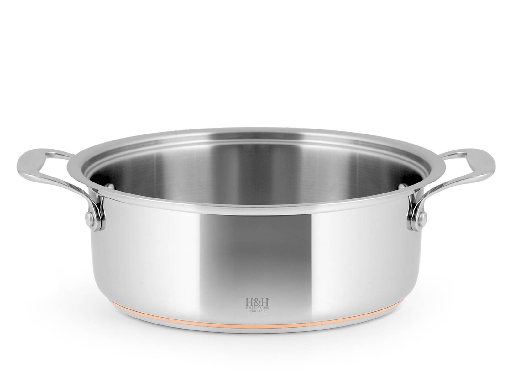 H&H Casseruola Bassa In Acciaio Inox 18/10 E Rame, Ø Cm24