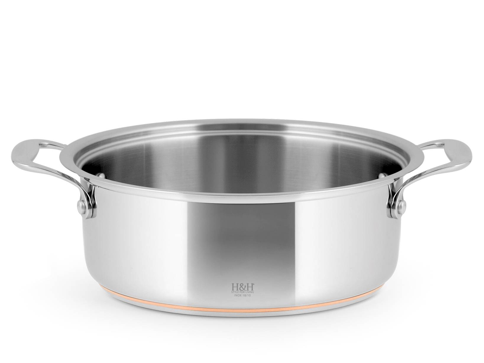 H&H Casseruola Bassa In Acciaio Inox 18/10 E Rame, Ø Cm26