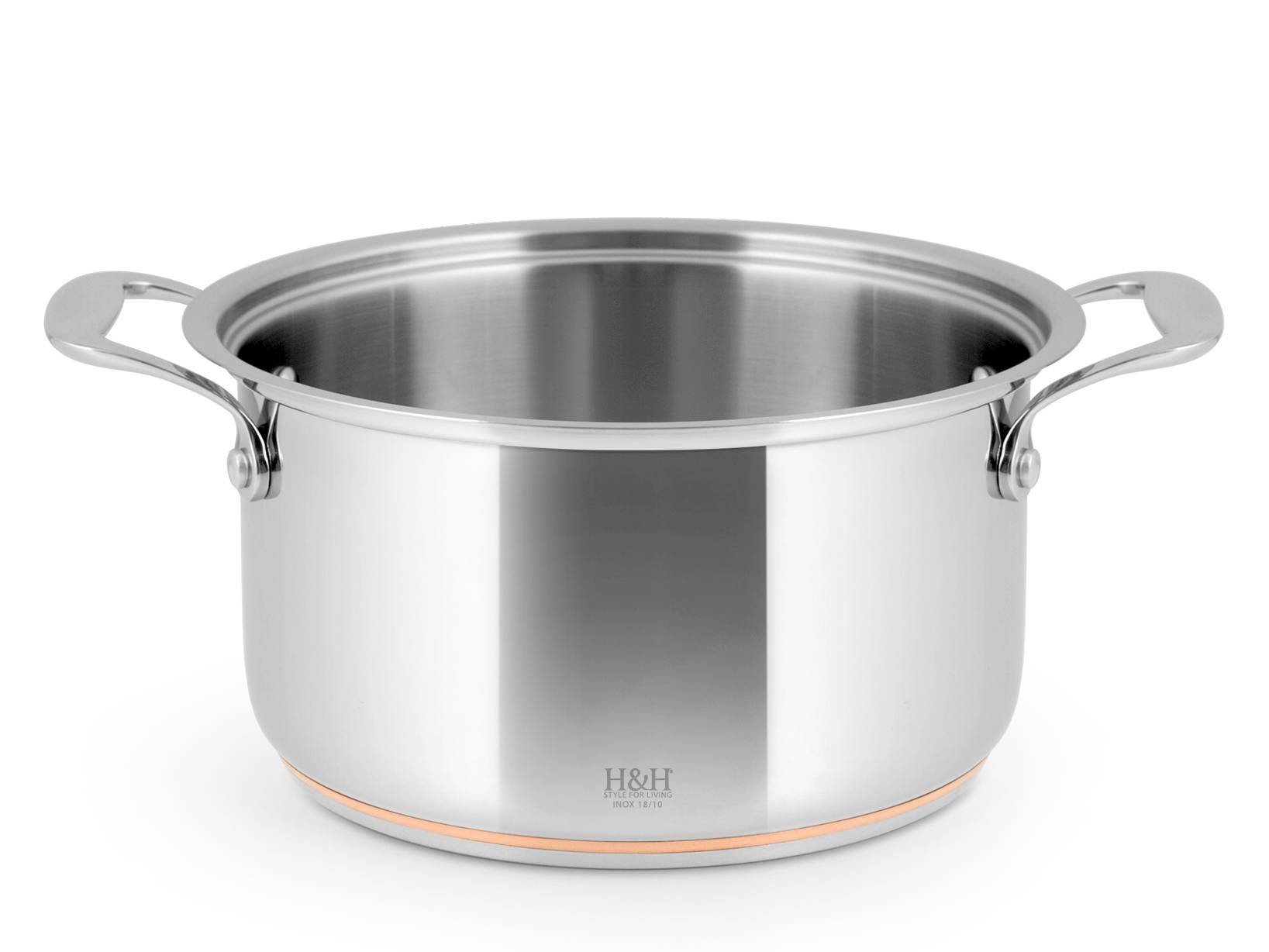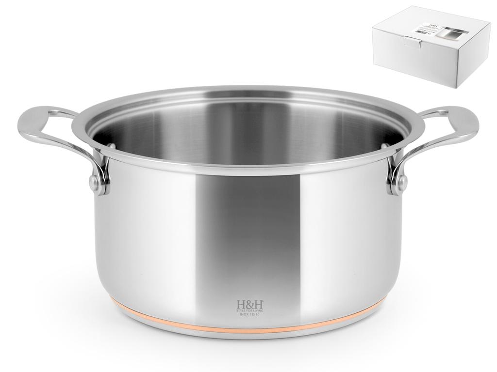 H&H Casseruola Alta In Acciaio Inox 18/10 E Rame, Ø Cm22