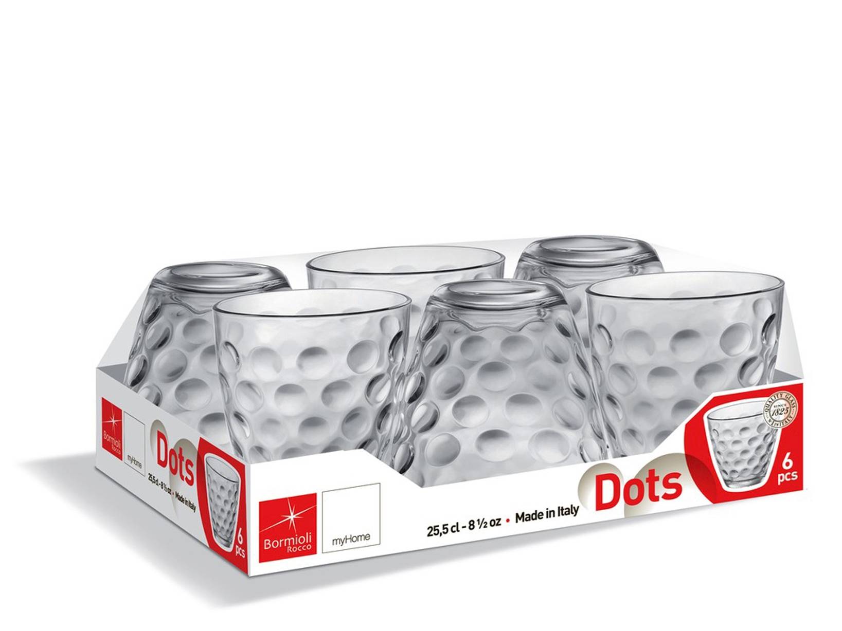 BORMIOLI ROCCO Set 6 Bicchieri Vetro Dots Acqua Cl25,5