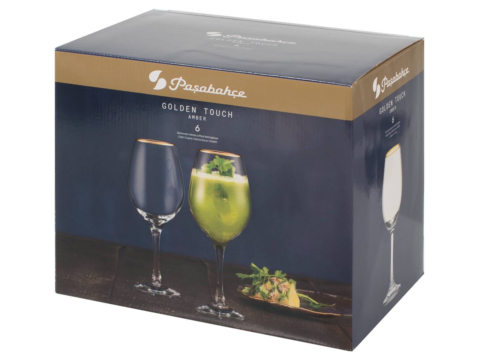 Set di 6 calici Amber in vetro trasparente con bordo dorato, capacità di 46 cl. Ideali per feste e cene raffinate. LINEA AMBER,Natale,tavola-di-Natale,Pasabahce