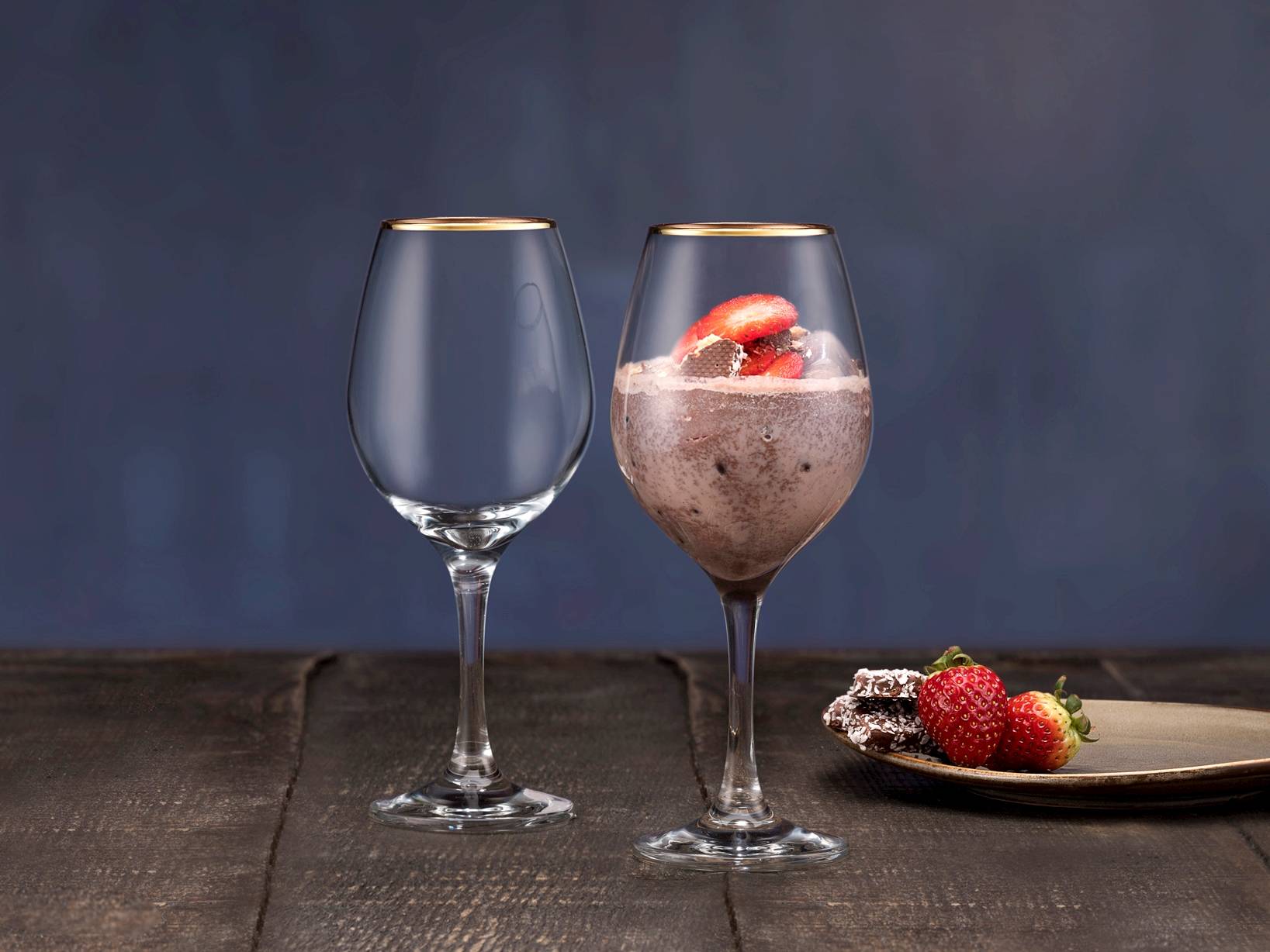 Set 6 Calici Amber In Vetro Trasparente Con Bordo Oro Cl46