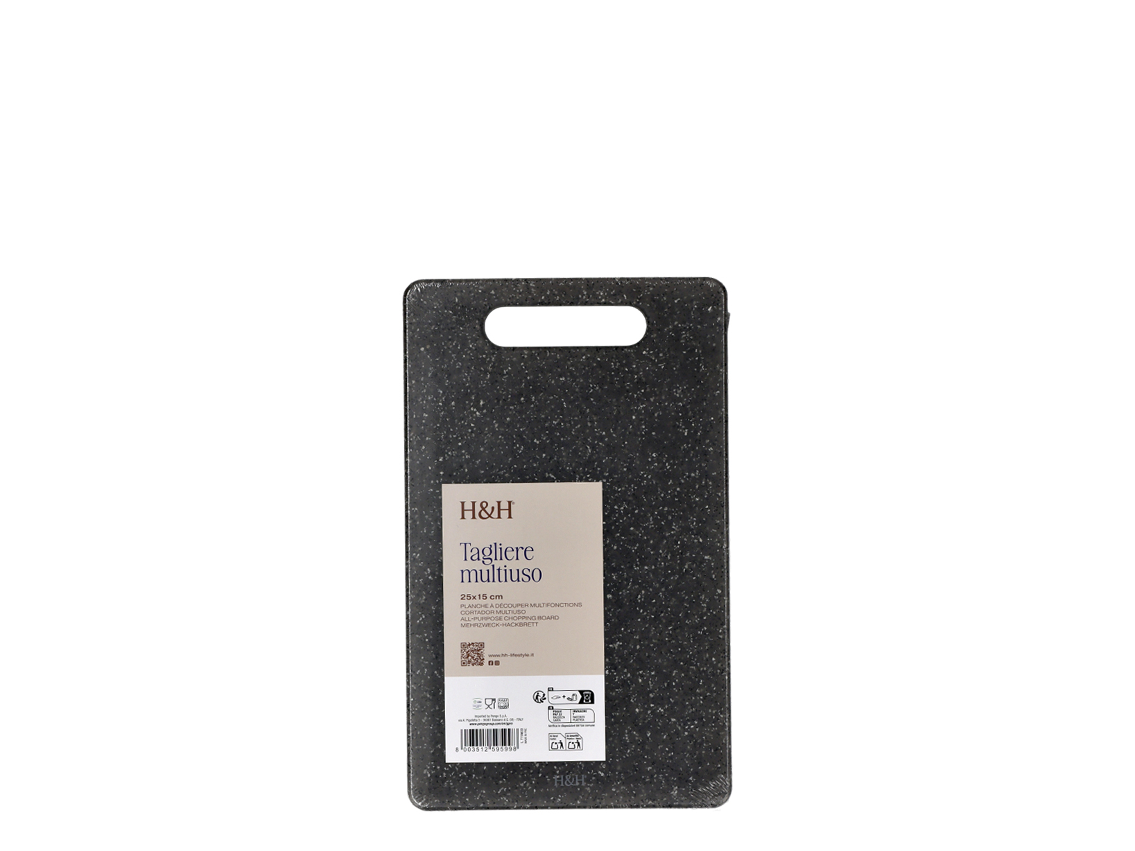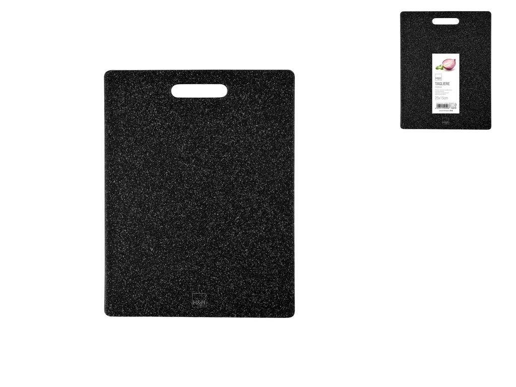 Tagliere in polipropilene dal design granito, in color antracite. Questo modello è dotato di un raccogli sugo per un utilizzo pratico e di una base antiscivolo per maggiore stabilità mentre si affettano gli alimenti. LINEA GRANITO TAGLIERI,H&H,heh