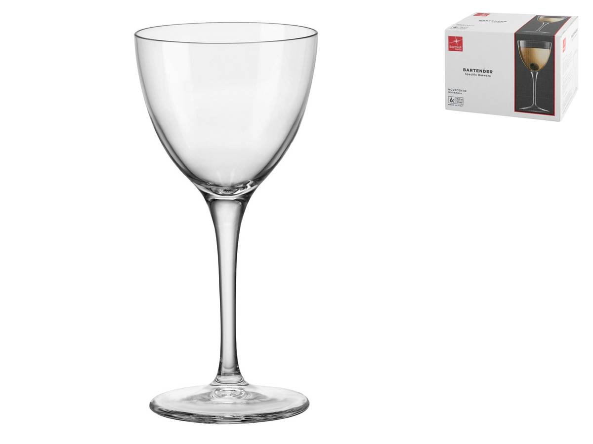 Set di 6 raffinati calici Novecento Nick&Nora in vetro, perfetti per cocktail, con capacità di 15,5 cl. LINEA NOVECENTO BARTENDER,LAVASTOVIGLIE,Bormioli Rocco
