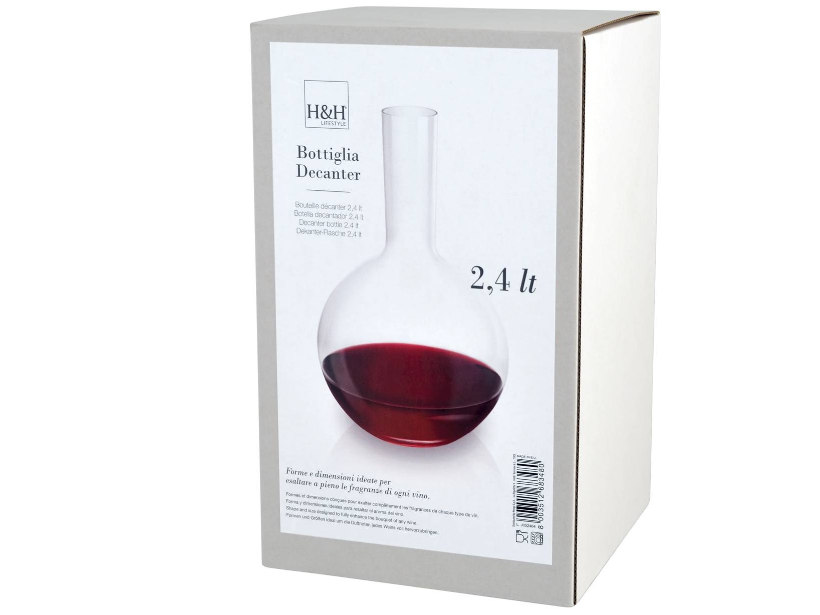 Decanter BOHEMIA ball in vetro trasparente lt2,4. Il decanter è un prezioso accessorio per apprezzare a pieno il buon vino. La forma allargata alla base e stretta sul collo permette ai vini, in genere quelli invecchiati o che lo necessitano, di ossigenarsi e di sviluppare il loro bouquet di aromi, per essere degustati al meglio una volta versati nei bicchieri. LAVASTOVIGLIE,H&H,heh
