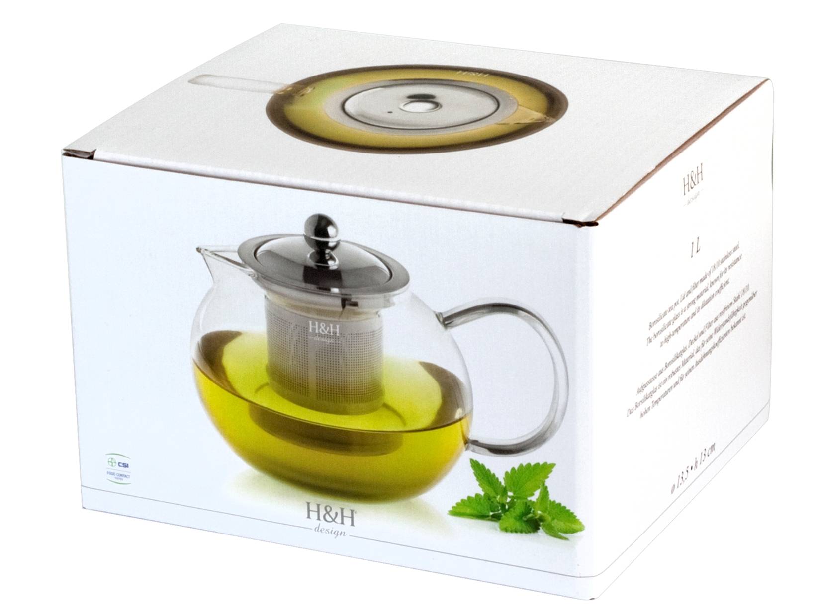 H&H Teiera Design InFusion In Vetro E In Acciaio Inox 18/10 Lt1