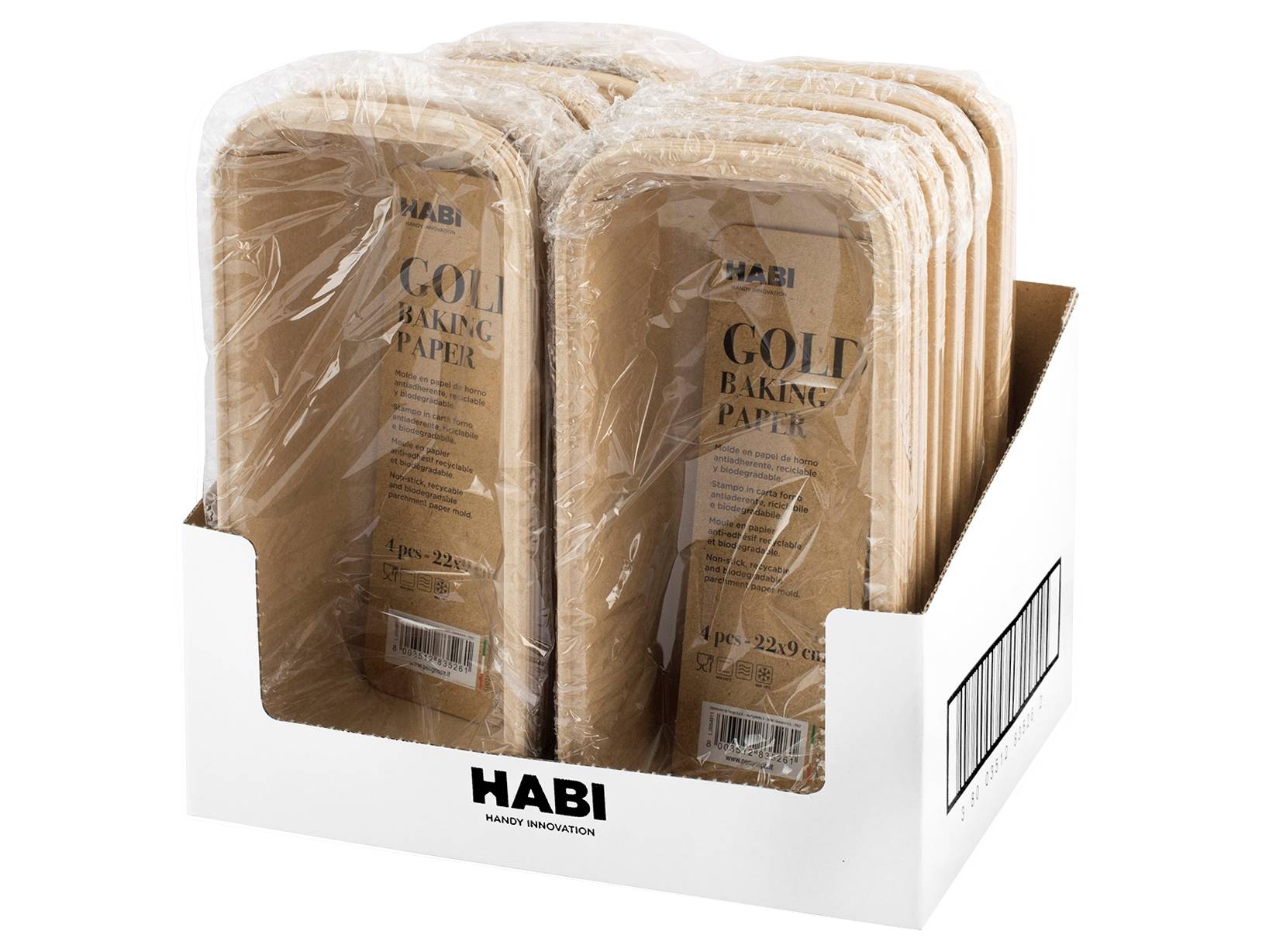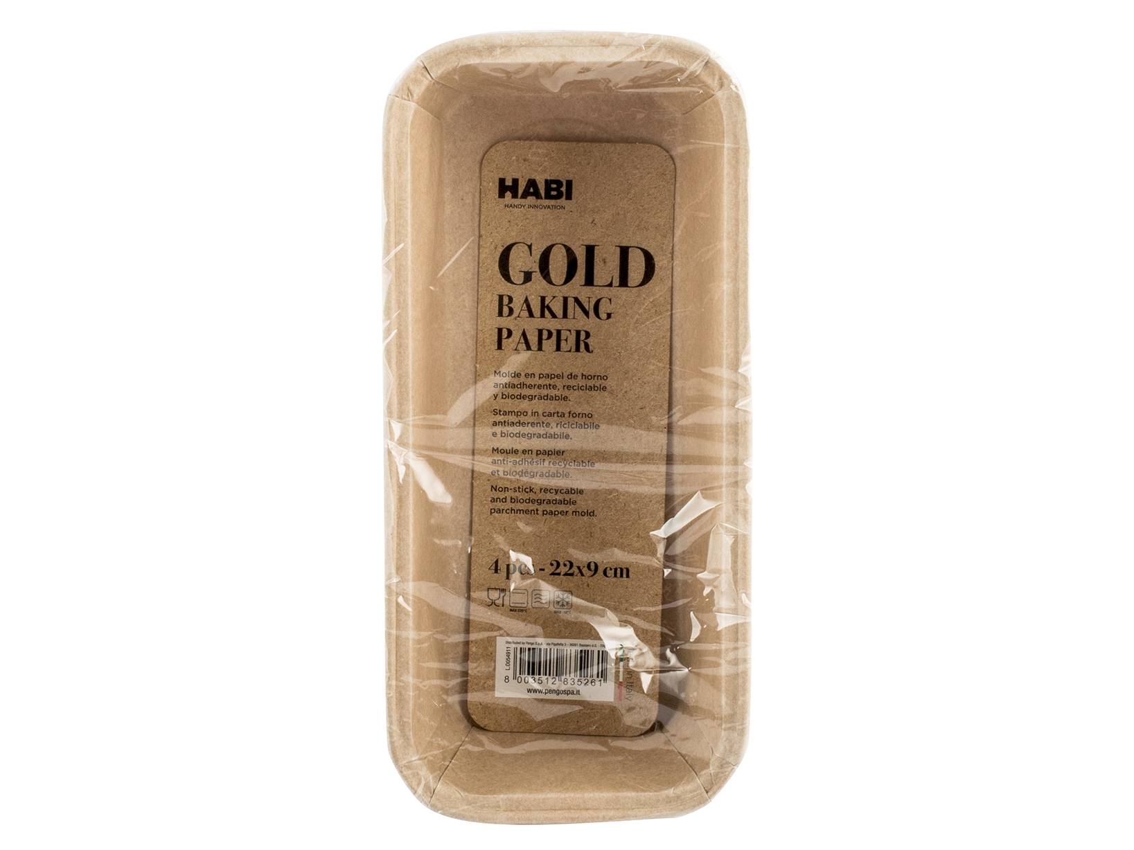 Set 4 stampi Gold rettamgolari in carta da forno antiaderente, riciclabile e 100% biodegradabile cm 22x9x6. Idonei all’utilizzo in ogni tipo di forno, dal più tradizionale forno elettrico alla più moderna friggitrice ad aria. LINEA GOLD BAKING PAPER,GOLD BAKING PAPER