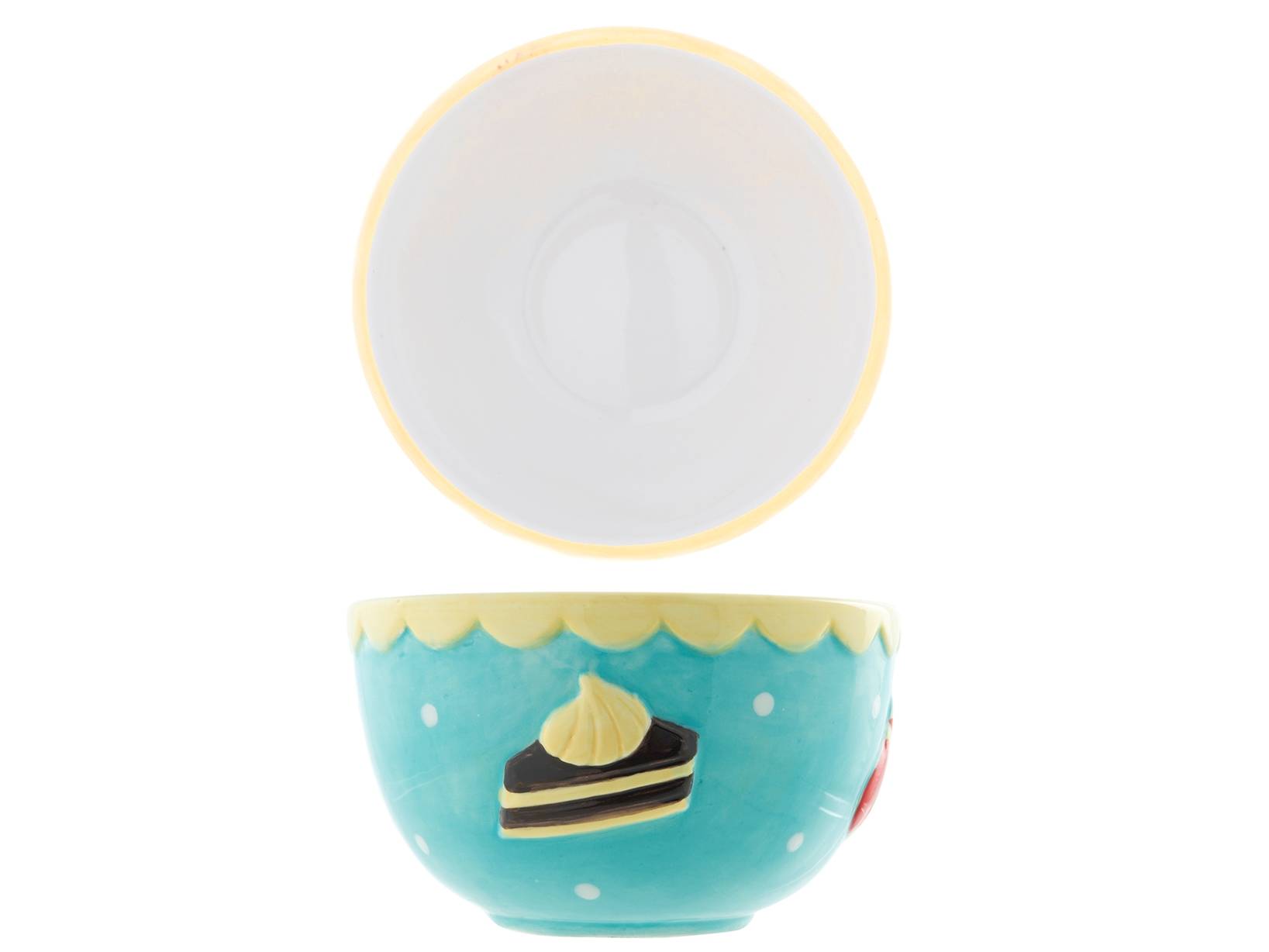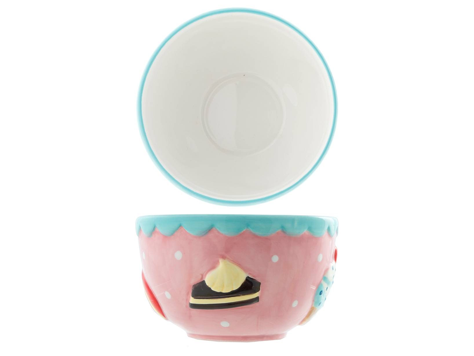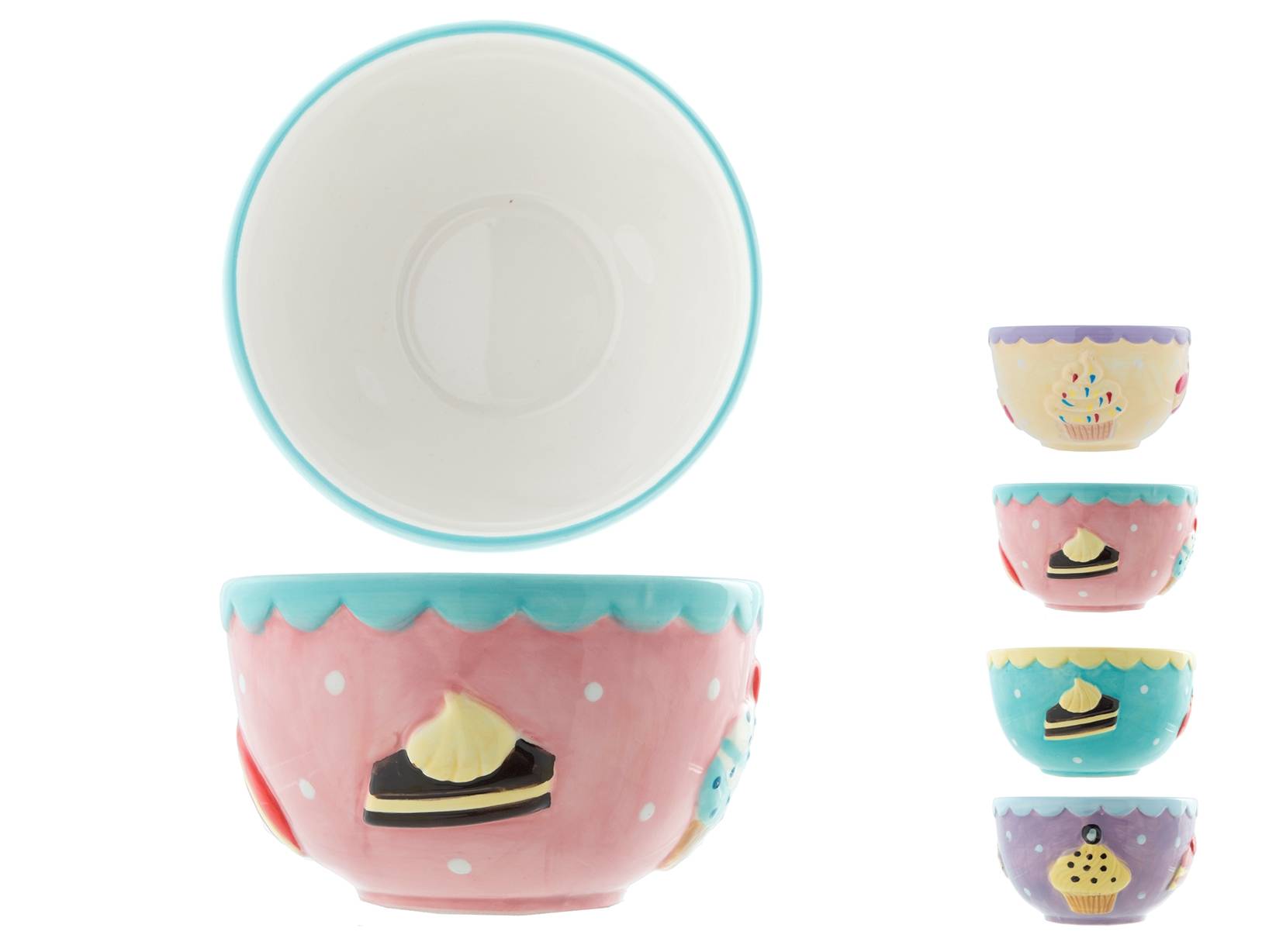 Set 4 coppette gelato in ceramica decorata a rilievo con motivi legati al mondo dei dolci. La linea tea time comprende anche alzatine, piatto e porta torta. LINEA TEA TIME,SCONTO15,HOME