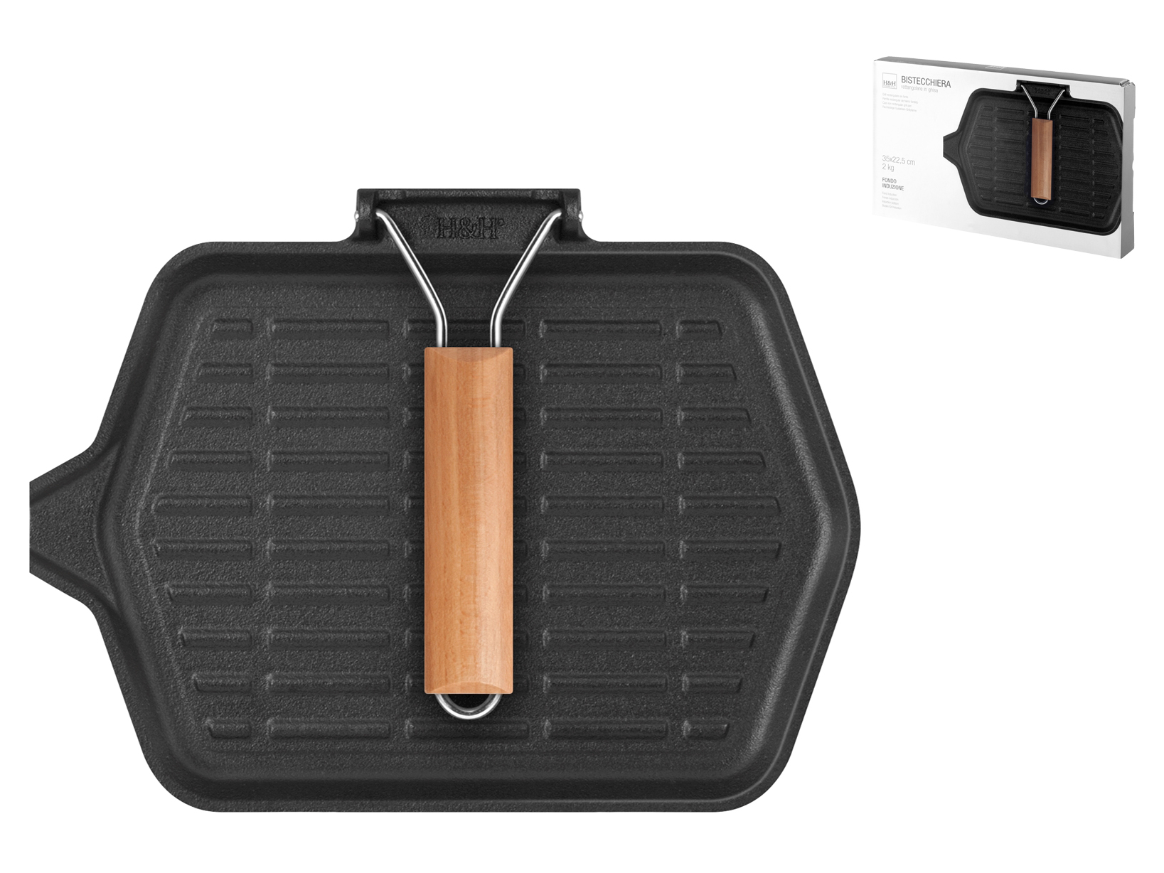 Bistecchiera rettangolare in ghisa con 1 manico in legno cm 22,5x35.
