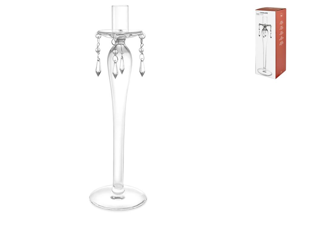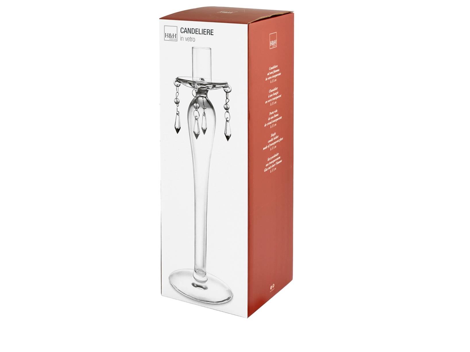 L'illuminazione piu' romantica e soft per una stanza e' senza dubbio quella data da una candela! i candelabri H&H sono disponibili a 1, 3 e 5 fiamme, in versione semplice o arricchiti da fili con gocce di vetro. Complemento d'arredo capace di cambiare l'atmosfera di un living come di una camera o un ingresso. Andrebbe spolverato quotidianamente per garantire luminosita' e trasparenza. Il modo migliore per pulirlo e' immergerlo in acqua e limone o in una soluzione di acqua e poco detersivo, l'importante e' asciugarlo molto bene. LINEA GLAM CANDELIERE,H&H,heh