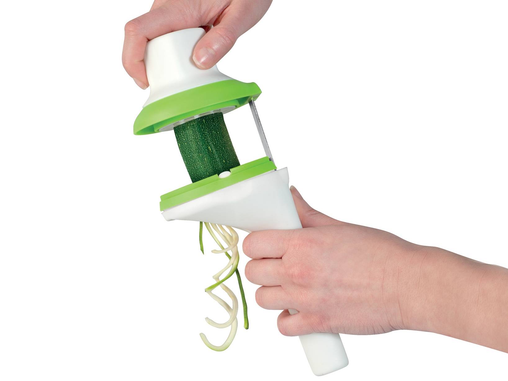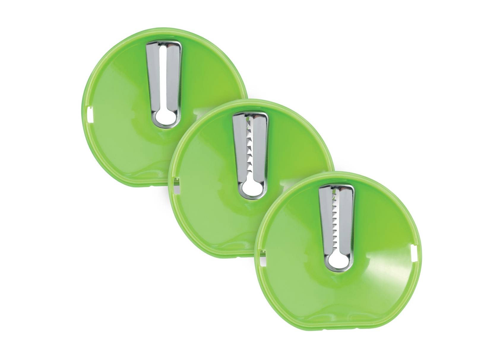 Tagliaverdure a bastoncino green line in abs e lame in acciaio inox con griglia da 5 mm e salvadita per creare facilmente le spirali di verdura grazie all'impugnatura ergonomica e alle lame in acciaio inox intercambiabili. Divertiti a creare colorati spaghetti verdura con le 3 diverse lame a disposizione, per guarnire i tuoi piatti con originalità o creare ricette salutari, buone da mangiare e belle da presentare. La confezione include: lama per spirali sottili, lama per spirali spesse e lama per spirali larghe. LINEA GREEN LINE