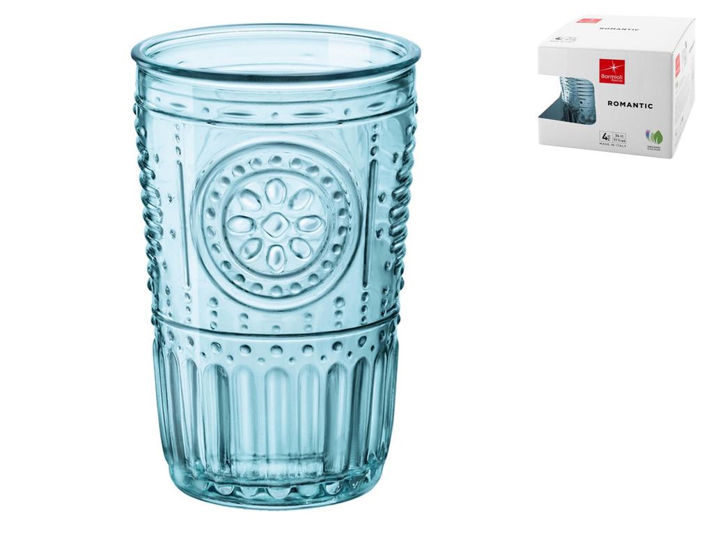 BORMIOLI ROCCO Set 4 Bicchieri Romantic In Vetro Azzurro Cl 34