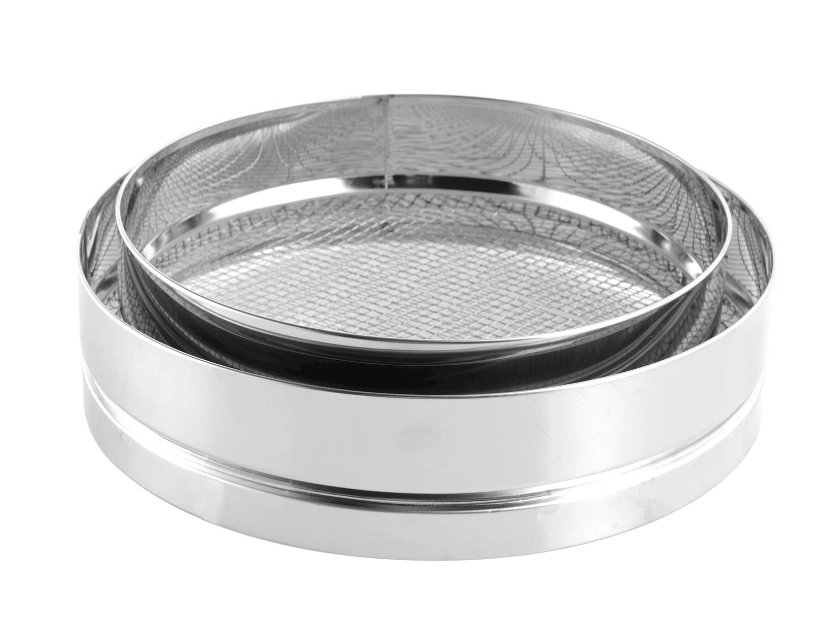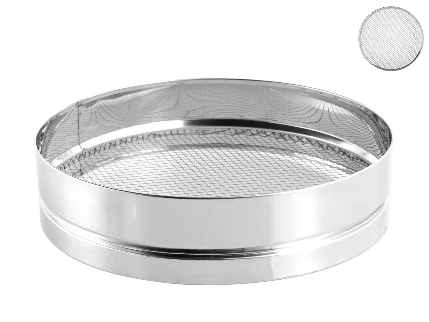 Setaccio per pesce in acciaio inox. Dimensioni: cm 30x30hx6 con foro cm 6x6. Strumento adatto per la preparazione di pietanze a base di pesce a anche di verdure, ad esempio, consentendo agevolmente di eliminare farina o panatura in eccesso. Il materiale è di qualità, robusto e resistente.