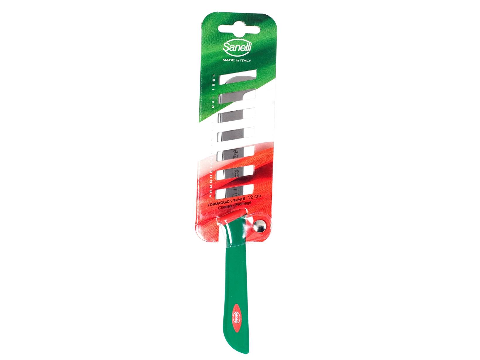 Coltello per formaggio Premana con lama in acciaio inox a 2 punte e manico antiscivolo da 12 cm. Ideale per tagliare formaggi duri e semiduri con precisione. Made in Italy. LINEA PREMANA,PREMANA